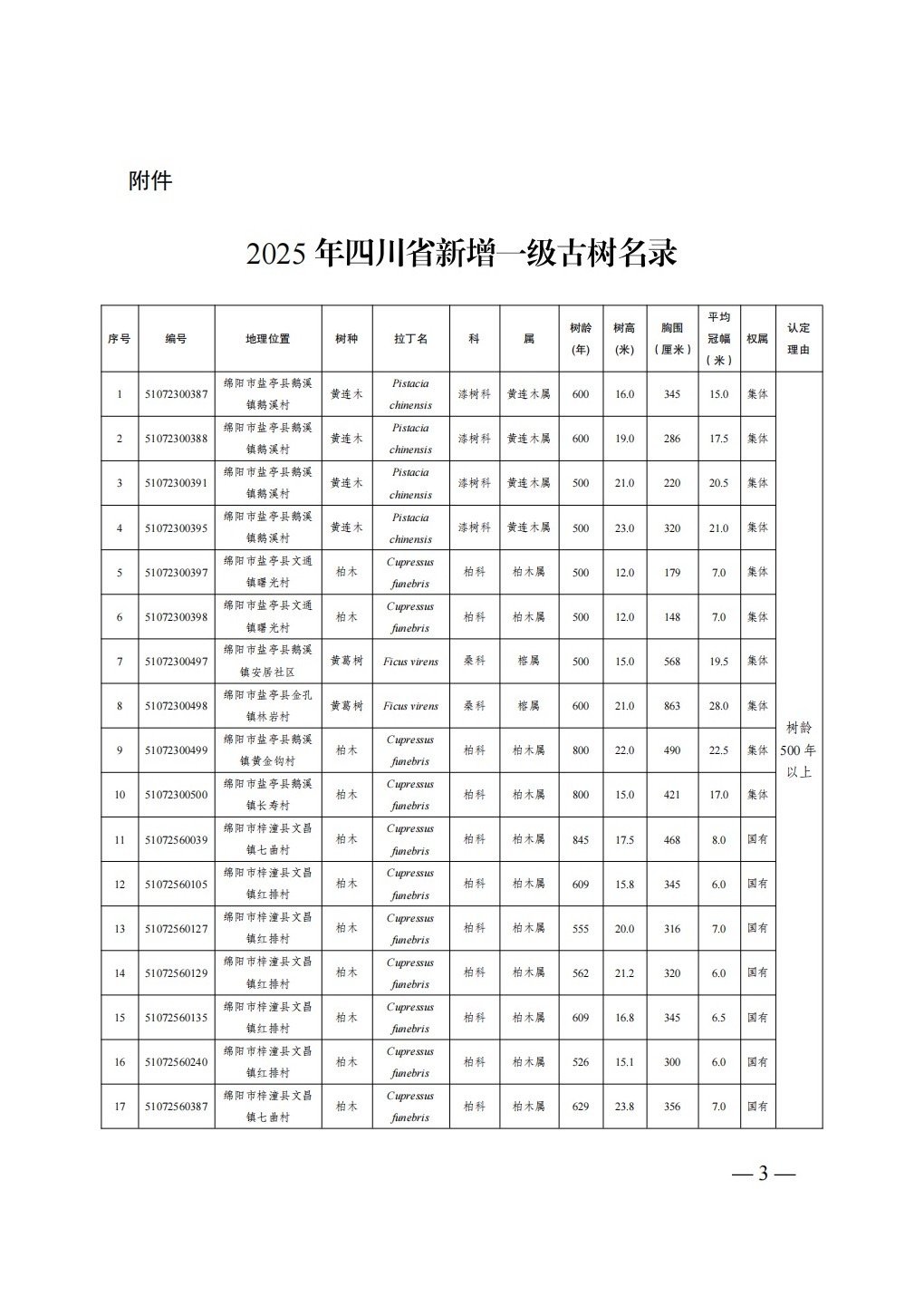2月13日,四川省人民政府发布《关于公布2025年四川省新增一级古树及名木名录的通告》,其中提到,2025年新认定四川省一级古树149株,名木1株。