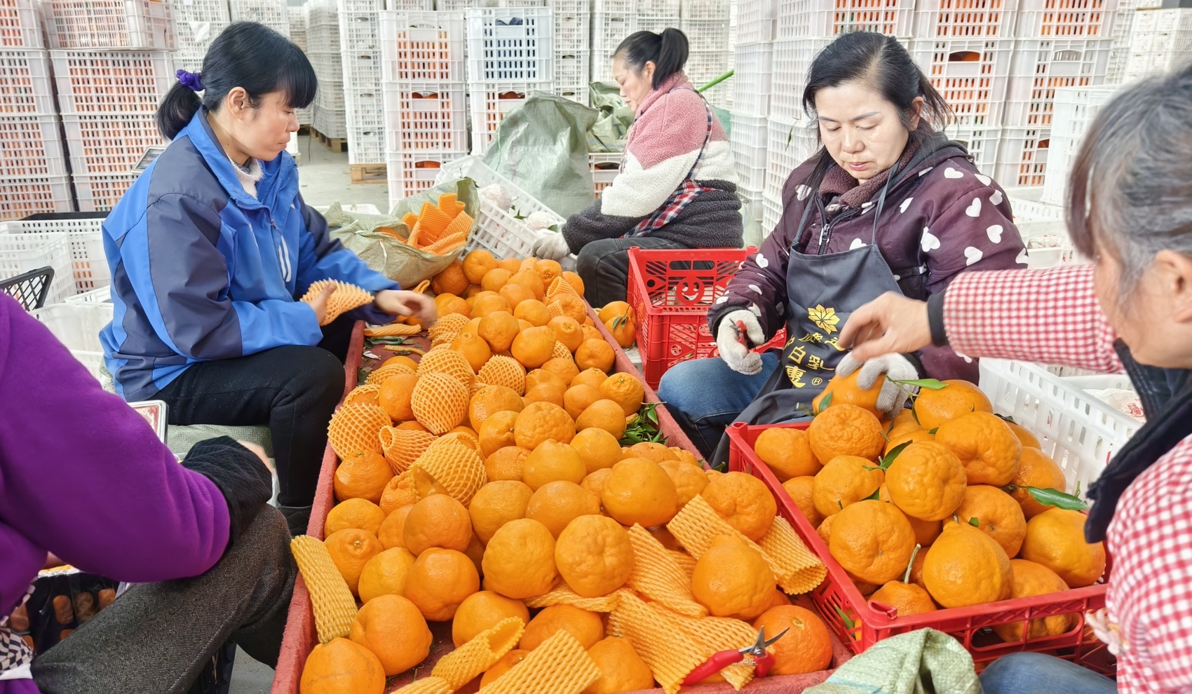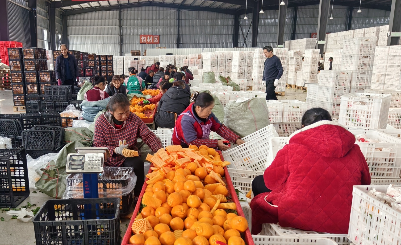 正值春节销售旺季,中心每天的出货量高达20万斤。摘果、搬运、分选、装箱……每一个环节都需要人手。原本冬闲的村民,现在成了抢手的产业工人。