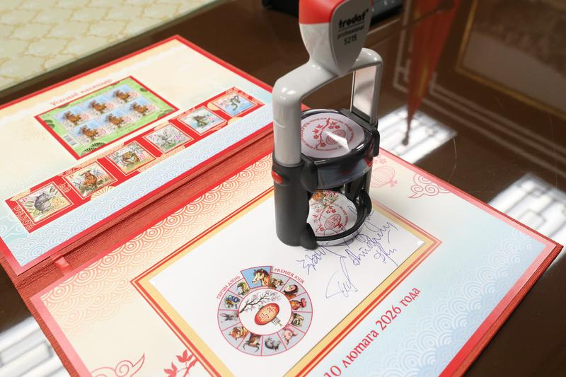 这是2月10日在白俄罗斯明斯克拍摄的白俄罗斯《东方历法:马年》邮票和首日封。新华社发(任科夫摄)