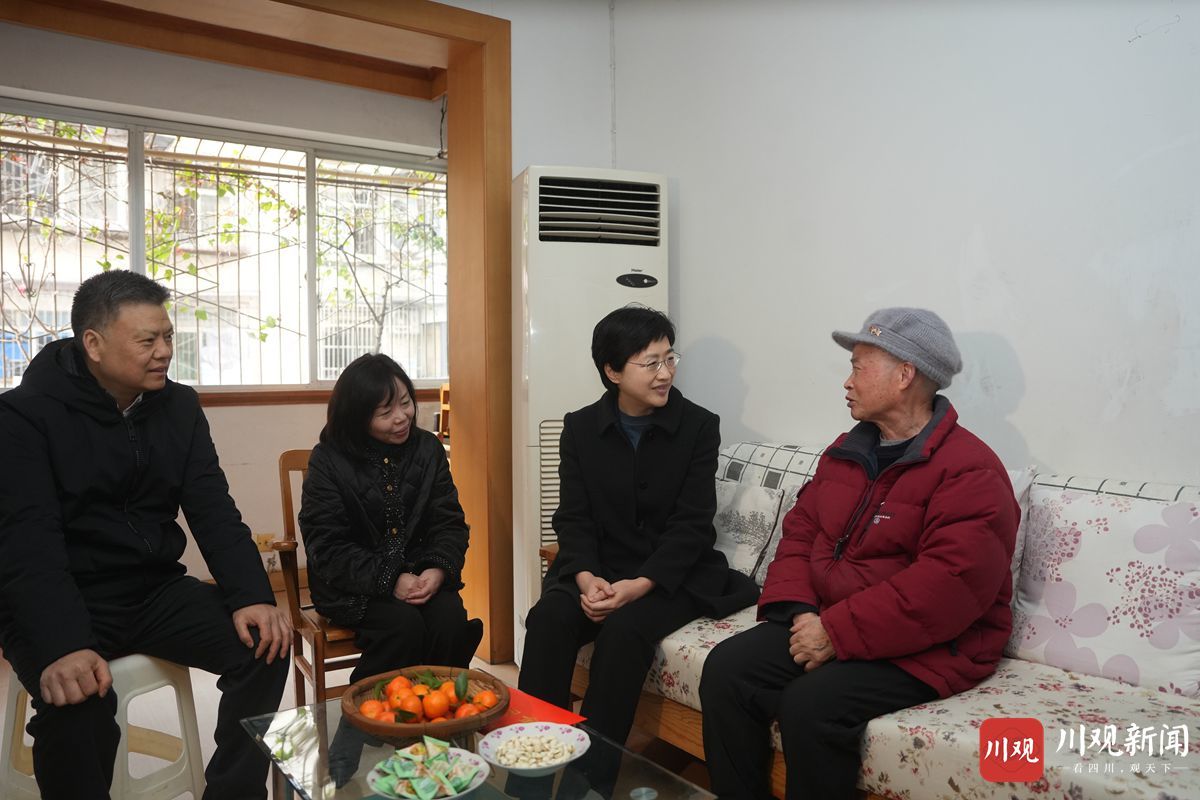 今年78岁的老党员冉广猛曾担任社区干部,退休后任小区居民自改委主任,积极带领大家推动老旧院落改造,曾获“四川省优秀社区主任”“成都市十佳市民”等称号。施小琳来到冉广猛家中,表达省委、省政府的感谢和祝福,询问老人身体状况和生活情况,向他长期以来发挥优势、积极参与基层治理的辛勤付出表示敬意。年近九旬的老战士朱龙吟16岁时就写下血书请愿参加抗美援朝战争,在部队期间荣立过三等功3次。在朱龙吟家中,施小琳认真倾听老英雄追忆浴血奋战的烽火岁月,向他为保家卫国、建设国家作出的贡献致以崇高敬意,祝愿他健康长寿、安享晚年,并叮嘱有关方面落实好优抚政策,不断提升退役军人的荣誉感归属感幸福感,铭记光辉历史、传承红色基因,推动全社会尊崇英雄、学习英雄、争做英雄。施小琳还看望慰问坚守在一线的基层社区干部,向他们致以诚挚感谢和节日问候。她说,要加强值班值守、主动靠前服务,全力守护群众平安欢乐祥和过节,用心用情把好事实事做到群众急需处心坎上,共同推动“十五五”良好开局,努力为全省人民创造更加美好的生活。