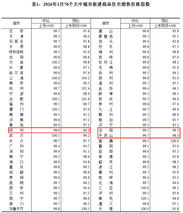 2月13日,国家统计局发布2026年1月份70个大中城市商品住宅销售价格变动情况。2026年1月份,70个大中城市商品住宅销售价格环比降幅总体收窄、同比下降。