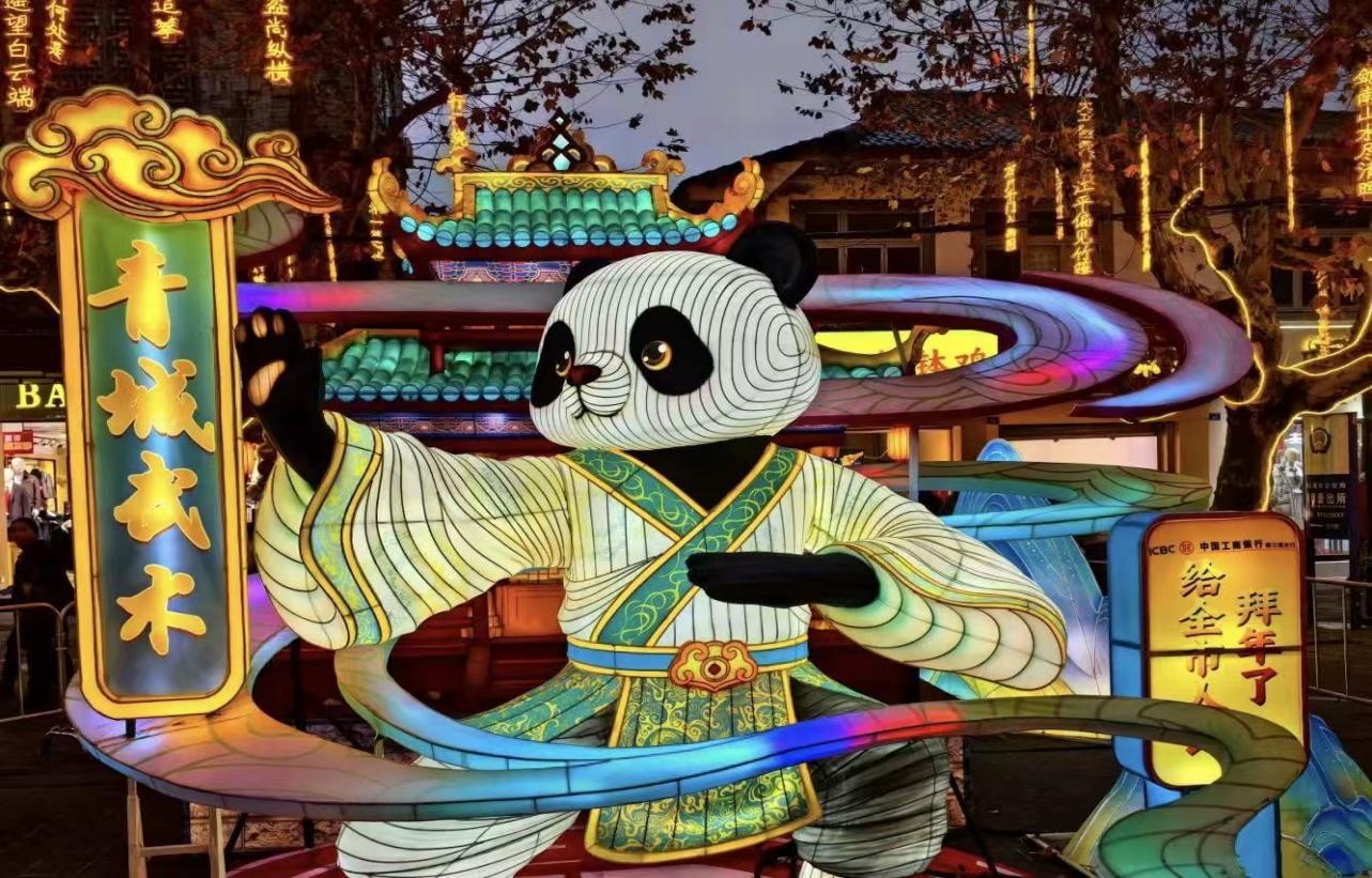 工行成都分行支持打造的“青城武术”熊猫灯组活灵活现。