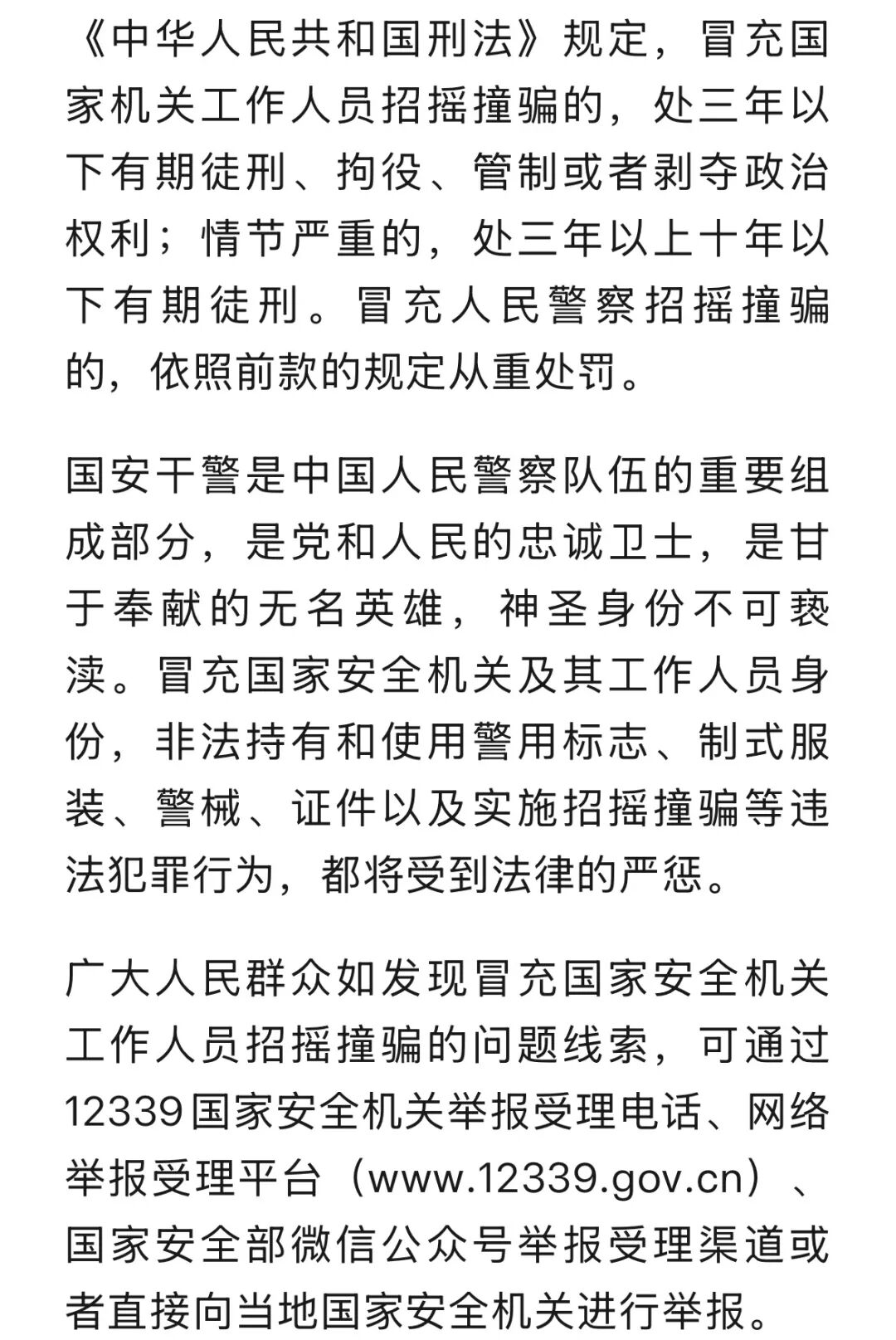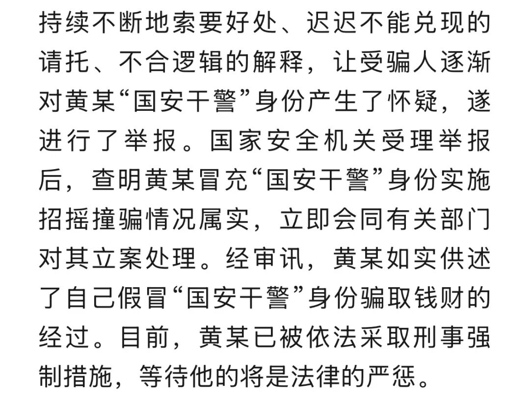 据“国家安全部”微信公众号2月13日消息,近期,国家安全机关破获一起假冒国家安全机关工作人员实施招摇撞骗的案件。