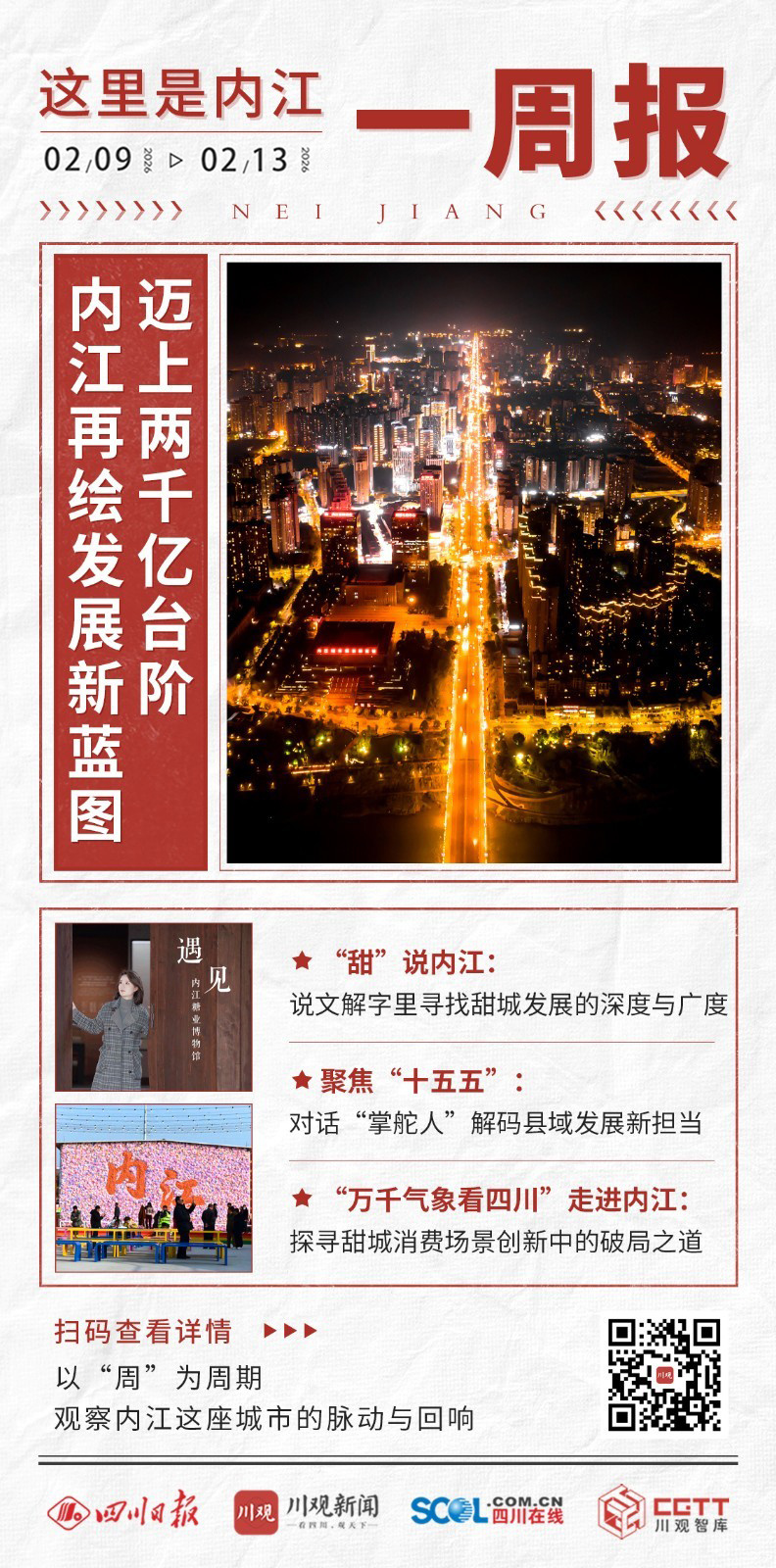 本周的内江,以 “甜” 为魂、以奋进为笔,在多重场景里书写开局之年的昂扬姿态。从《“甜” 说内江》全景展现七大片区差异化协同发展,到两会期间《“十五五” 看担当》专访解码县域发展新蓝图;从 “万千气象看四川” 探访消费场景创新破局之路,到糖业博物馆即将开馆唤醒三百年糖业文脉,文脉与产业交织、规划与实干同行。内江将味觉之甜延伸为产业之实、民生之暖、文化之韵,消费活力迸发、产业能级提升、历史文脉焕新。这座 “成渝之心” 正以实干笃行奔赴高质量发展新程,甜城未来更具气象、更值得期待。