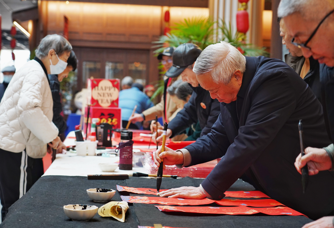 值得一提的是,春节期间,温江各养老机构将传统年俗与地方特色文化深度融合,精心推出系列特色活动。除了写春联、剪窗花、包汤圆等经典年俗项目,还特别组织新春拍“福”照、回忆鎏金经典传唱、祈福纳吉小品鉴赏等新春联欢活动,让长者在康养之余,充分感受温江独有的年节氛围与人文魅力,在“幸福花园城”开心过大年。