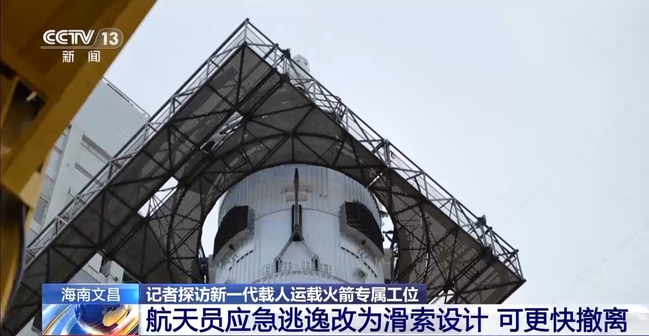 文昌航天发射场 张博:滑索的优势在于速度会更快,这样航天员能更快滑到地面,撤离到安全位置。我们目前的设计是每一个航天员都有独立的一套滑索。