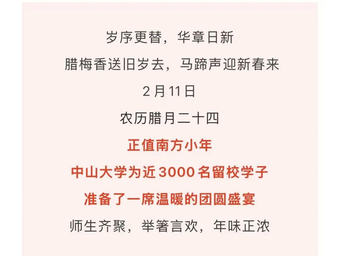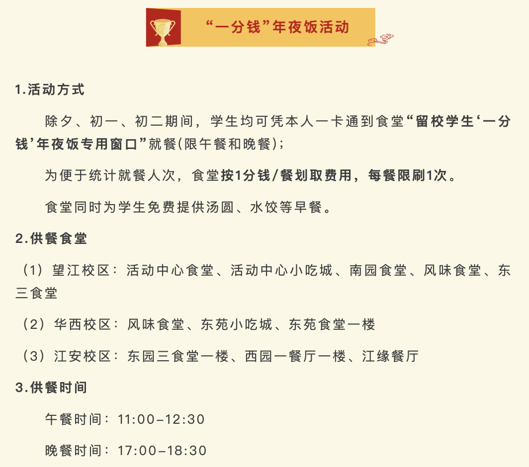 可免费到食堂享用年夜饭