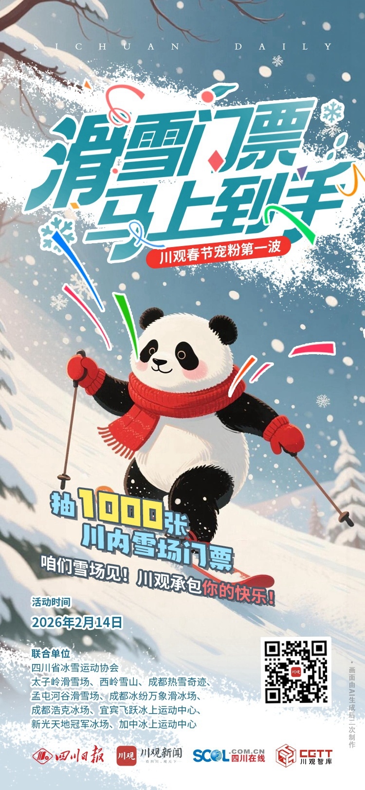 川观宠粉啦,千张滑雪门票免费送