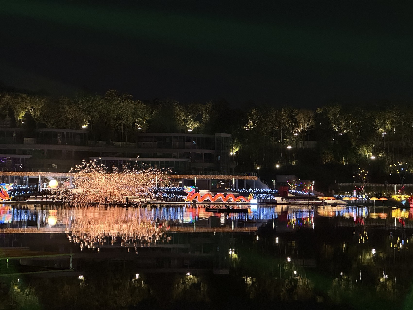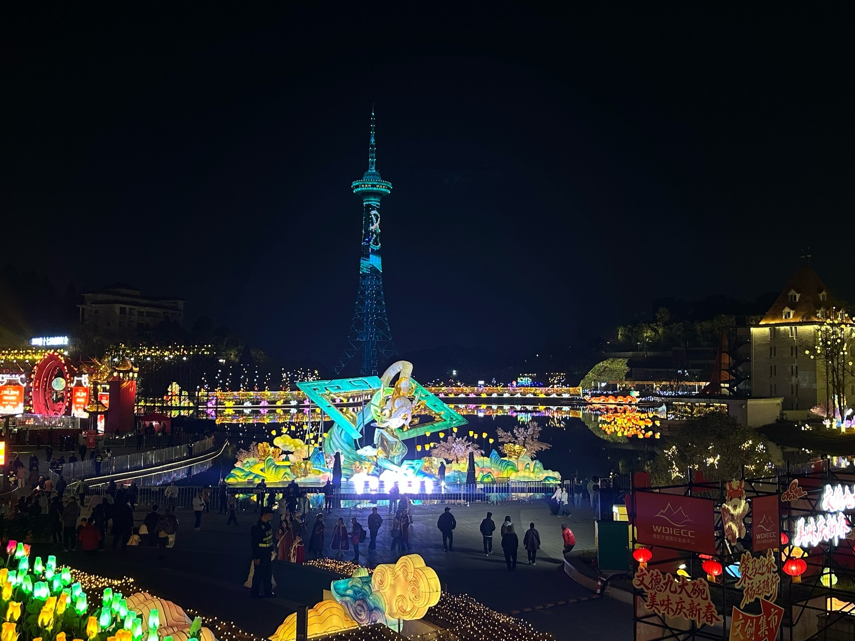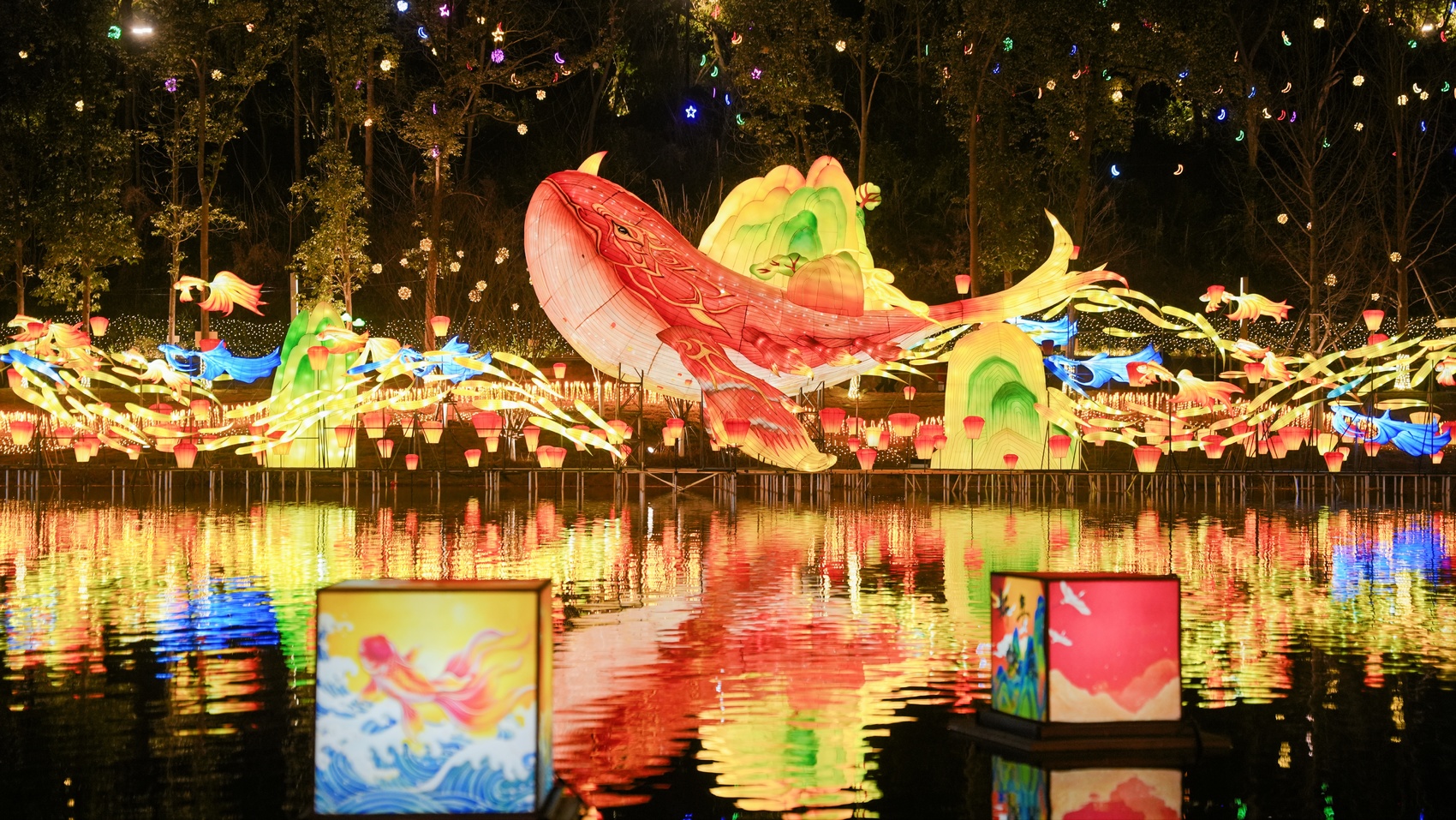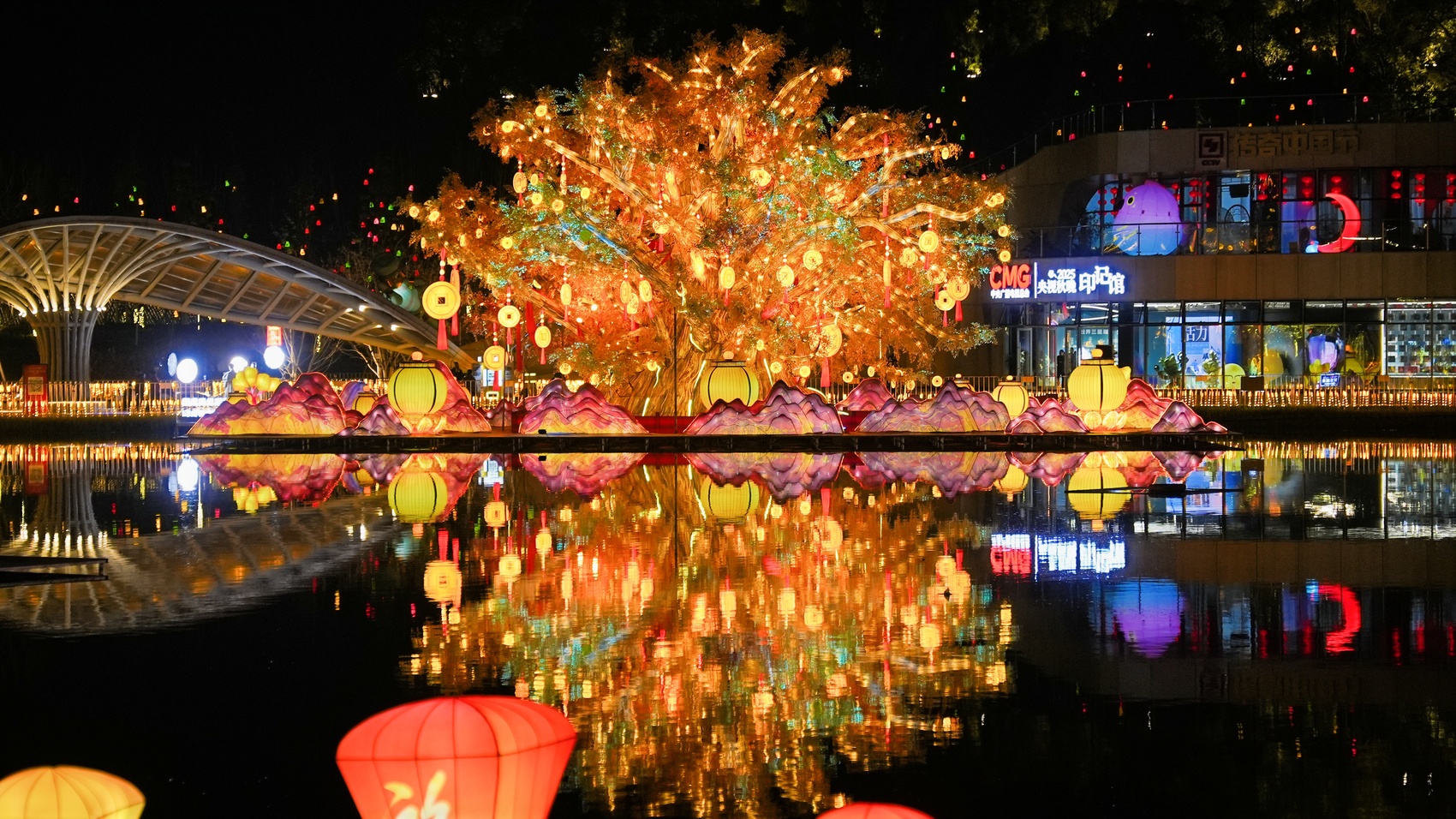 2月13日晚,以“三星璀璨 骐骥驰骋”为主题的第十七届德阳灯会在德阳玄珠湖畔正式亮灯。一组组华灯绽开,金色光芒流淌入水,与星空连成一片璀璨灯海。据悉,本届德阳灯会将持续至3月8日。