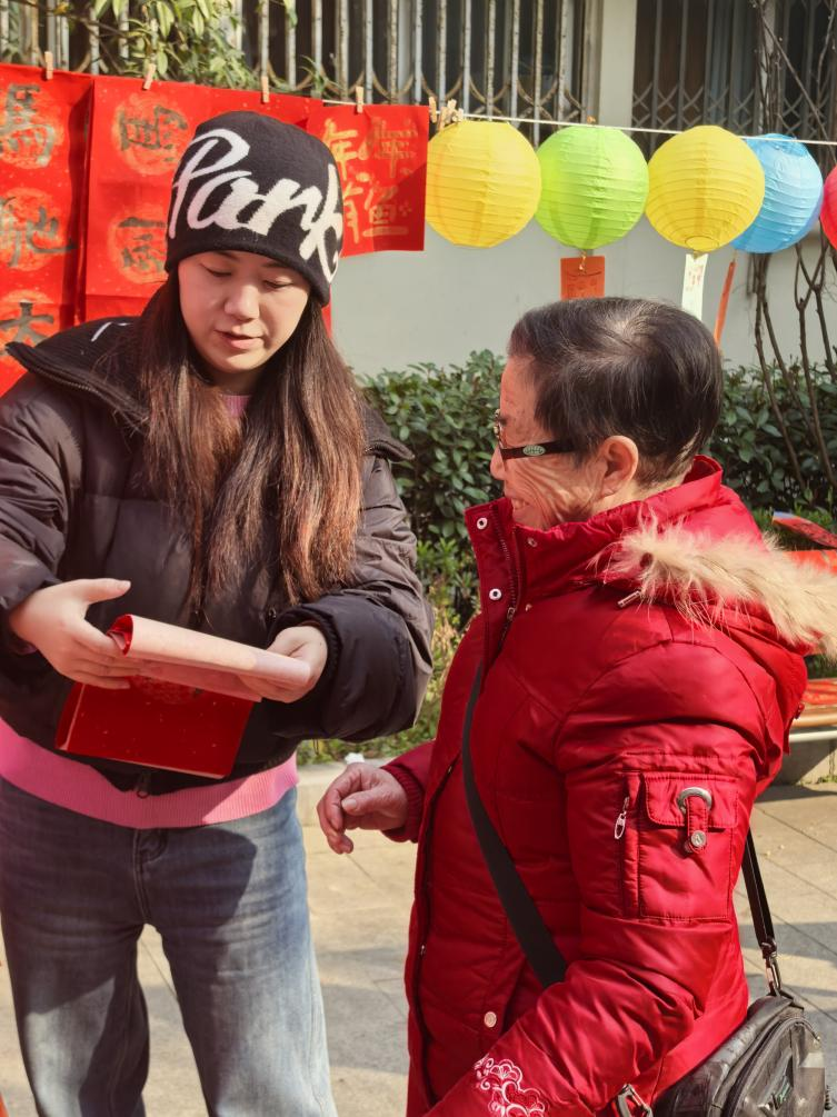 写福字、送春联、拍合照……上午10点,成都市成华区万年场街道红桥社区槐树苑A区中庭,人头攒动。“还要发‘年货’哦。”小区业委会主任张丽萍喊道,“大家记得来领米和油!”