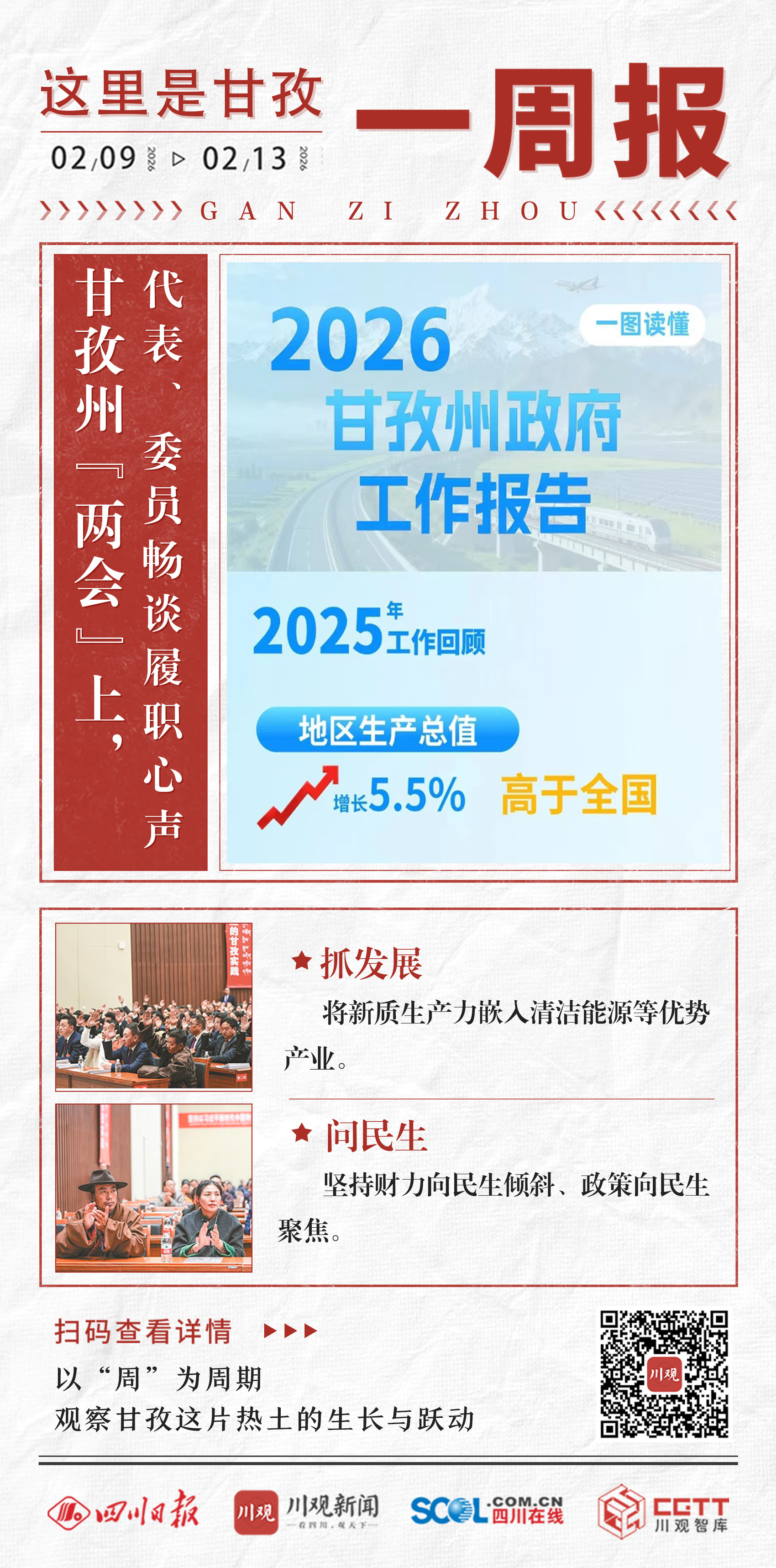 刚刚过去的一周,是甘孜州一年一度的“两会”时间。“两会”上,州人大代表和州政协委员有哪些“好声音”?州政府工作报告中锚定了哪些目标?川观新闻记者为你梳理。