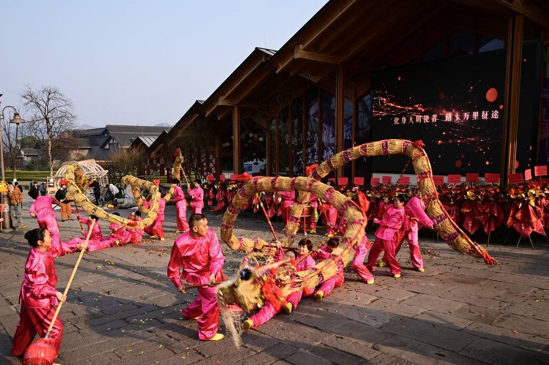 据了解,整个春节期间,李庄文化旅游度假区将为游客献上一场文化盛宴,包括舞草龙、非遗变脸吐火、中式婚礼演艺、水上民乐表演、情景舞蹈表演、川剧演绎、“孔明灯”和无人机表演等精彩内容。