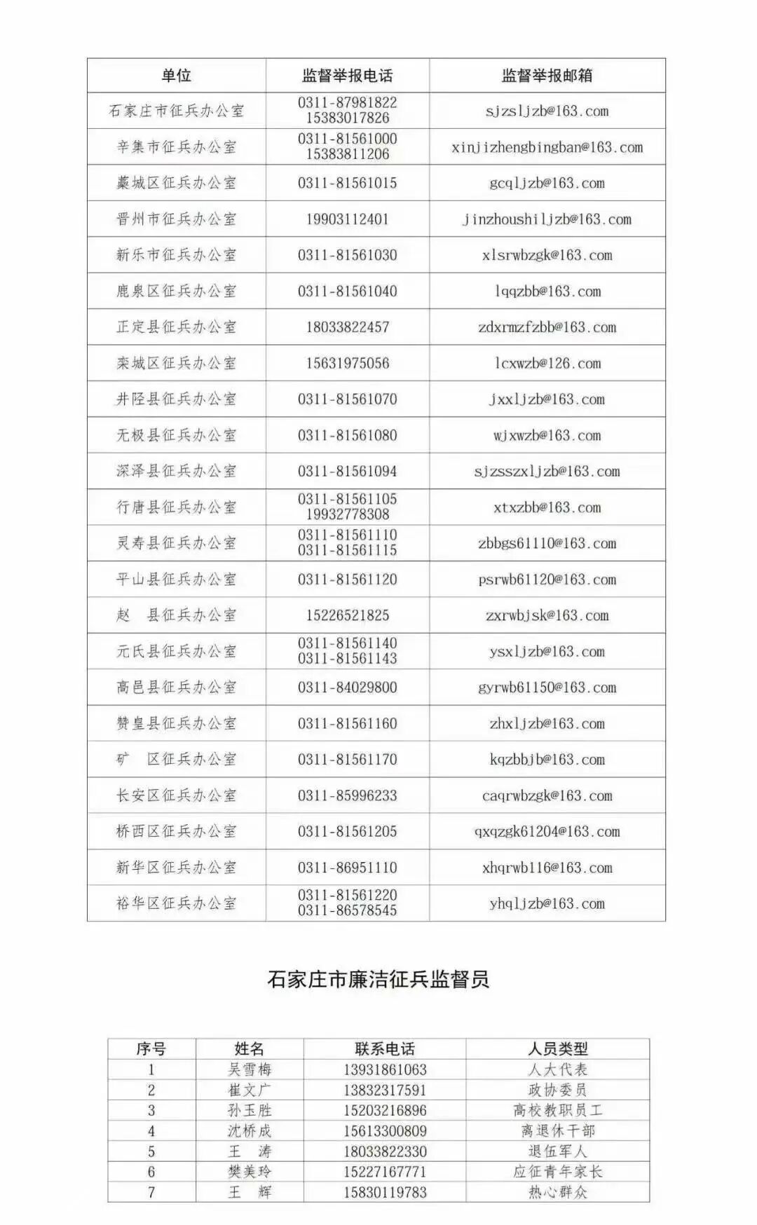 征兵工作全程公开、阳光运行,所有应征青年都要经过网上报名、初检初考、体格检查、政治考核、役前教育等环节,体检政考“双合格”后,由兵役机关统一组织综合素质测评,测评结果录入国家配发的信息系统,定兵对象和入伍去向由系统自动生成,会议集体研究审定,全程公开透明,任何个人都无法干预。应征过程中,如发现征兵工作人员有吃拿卡要、收受钱物、接受宴请等违规行为的,请及时向军地纪检监察部门举报,我们一定认真受理、严肃查处。也希望所有应征青年及家长严格遵守廉洁应征有关规定,坚决杜绝给征兵工作人员送钱送物、安排宴请等行为,如经查实,将直接取消入伍资格。