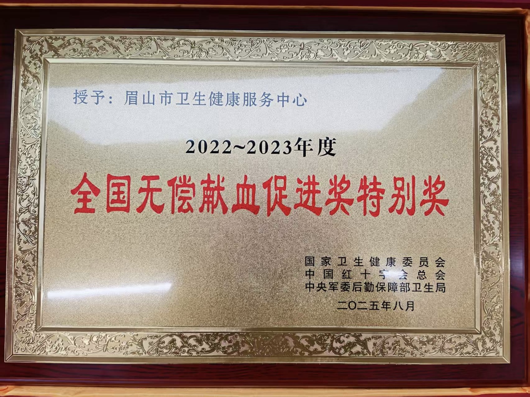 正因这股“跑出来”“磨出来”的韧劲,眉山市卫生健康服务中心摘得2022—2023年度全国无偿献血促进奖特别奖——这是眉山卫健系统第九次获得的国家级献血荣誉。
