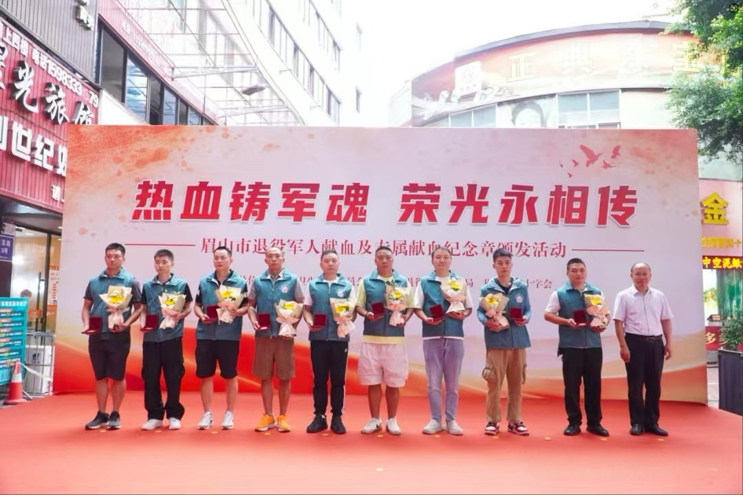 “退役不褪色,热血续忠诚”。眉山市卫健委联合眉山市退役军人事务局、眉山市红十字会,为退役军人献血者颁发无偿献血专属纪念章,增强其荣誉感与归属感,同时激励更多符合献血条件的人加入到无偿献血者队伍,保障临床用血。