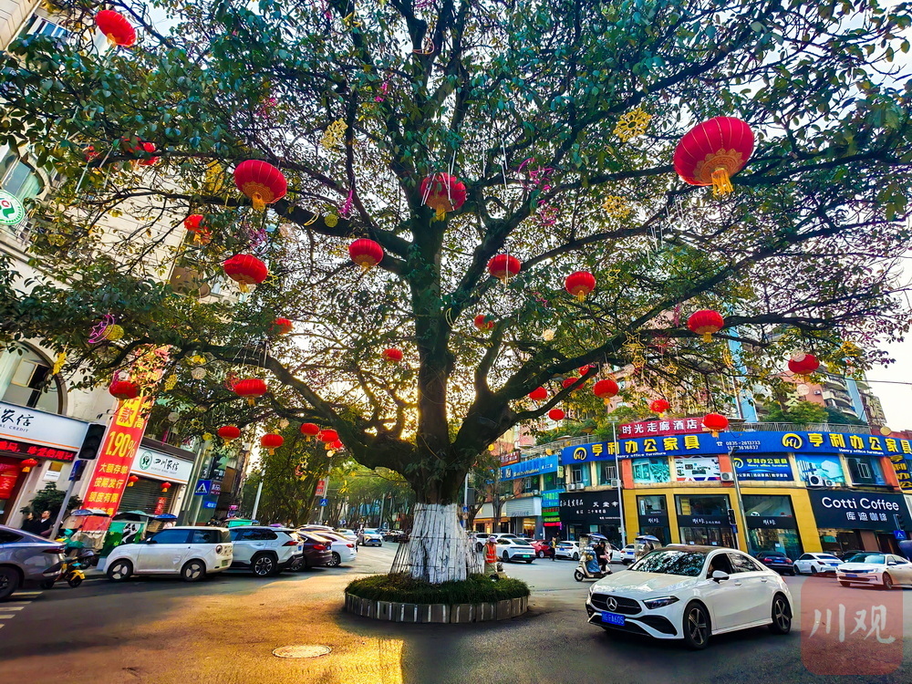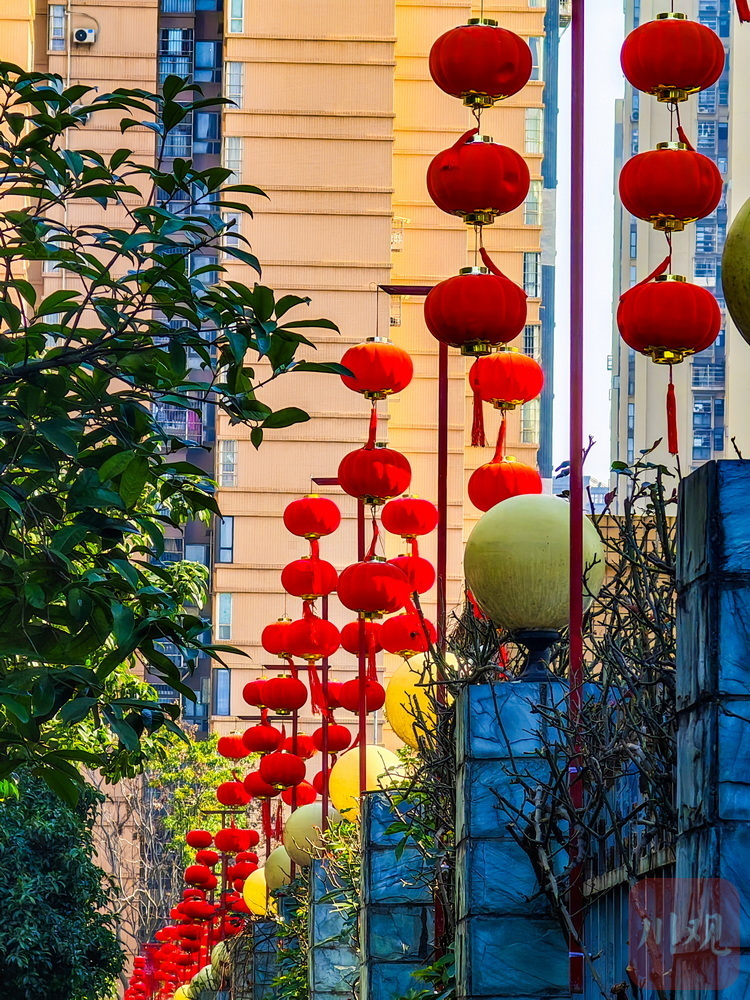 火红的大灯笼、喜庆的中国结、缤纷的彩妆饰品……2月13日,马年春节前夕的雅安街头换上了“新春盛装”,新春的喜庆气息扑面而来。路灯下、枝桠间,一盏盏灯笼、一串串中国结错落点缀,将街景装点得温暖而隆重。不少市民驻足流连,举起手机随手记录,每一帧都是年味十足的氛围大片。