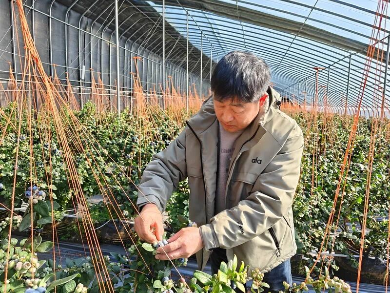 合作社负责人王书昆借助“大棚+盆栽”的创新种植模式,蓝莓树实现了提前挂果,品质更优,目前每斤蓝莓批发价达到80元。