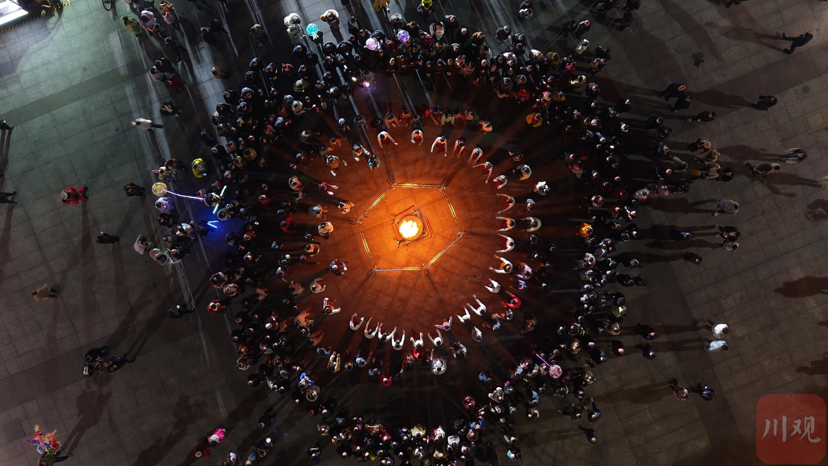 随着音乐会最后一个音符落下,广场中央的篝火瞬间点燃,欢快的锅庄舞曲随即响起,身着民族服饰的舞者率先起舞,市民游客纷纷加入队伍,手拉手围成圆圈,跟着节奏踏歌起舞。火光映红了每一张笑脸,素不相识的路人,在这一刻,他们围成一个圆,跳成一家人。