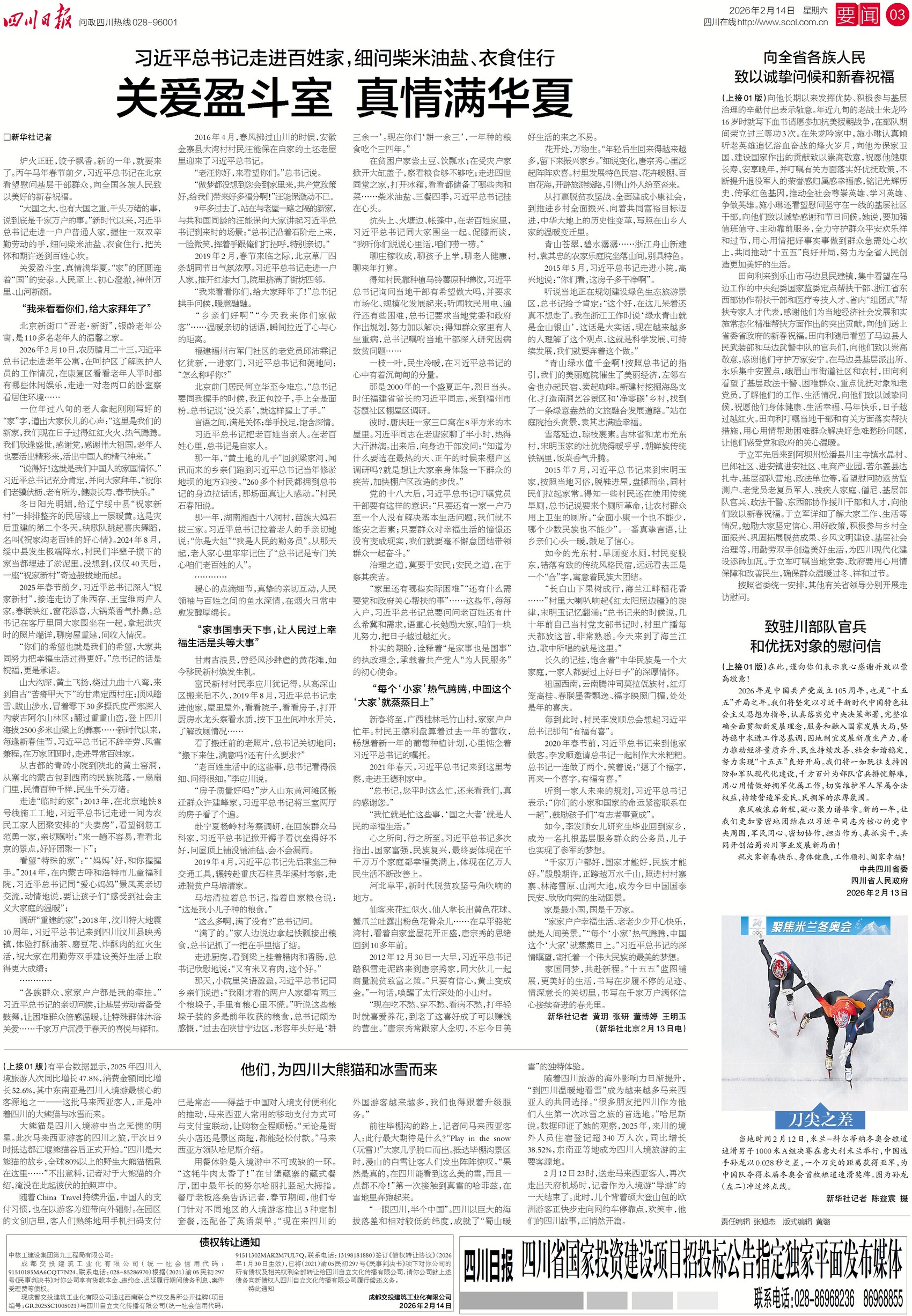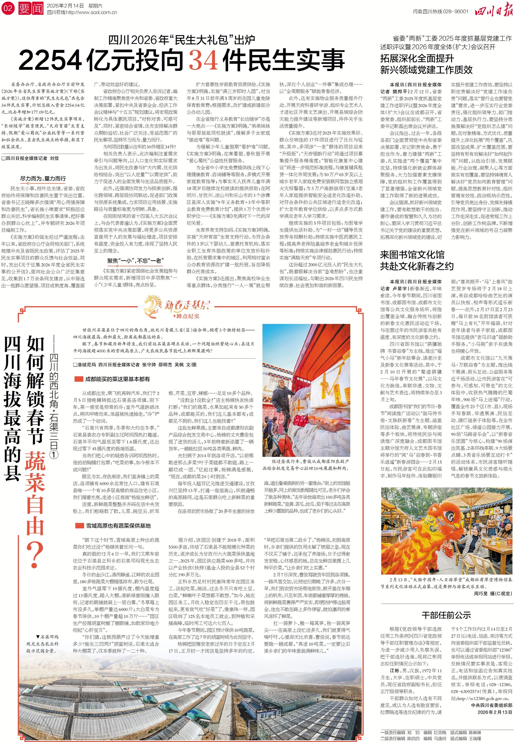 民生无小事,枝叶总关情。四川2026年"民生大礼包"出炉,2254亿元资金将投向34件民生实事,相比于往年,今年的民生实事有哪些变化?将重点聚焦哪些方面?关注今日一版、二版,感受政策的温度。