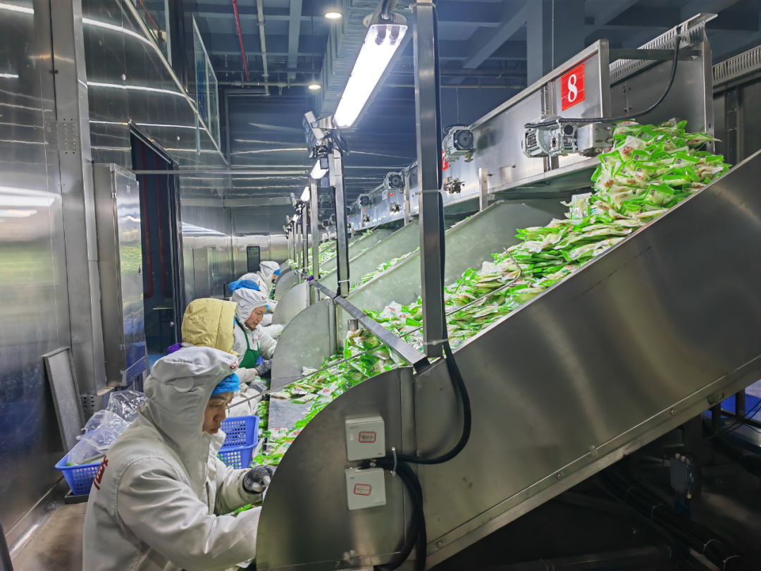 公司成品车间里,自动化包装线“哒哒”作响,一袋袋刚生产出库的泡椒笋,经过包装、传送、扫码、封箱,再由叉车转运装车,发往四川、重庆、湖北等地。“近期主要生产泡椒笋条,车间工人全员在岗,生产线满负荷运转。”成品车间组长刘丽琼说。