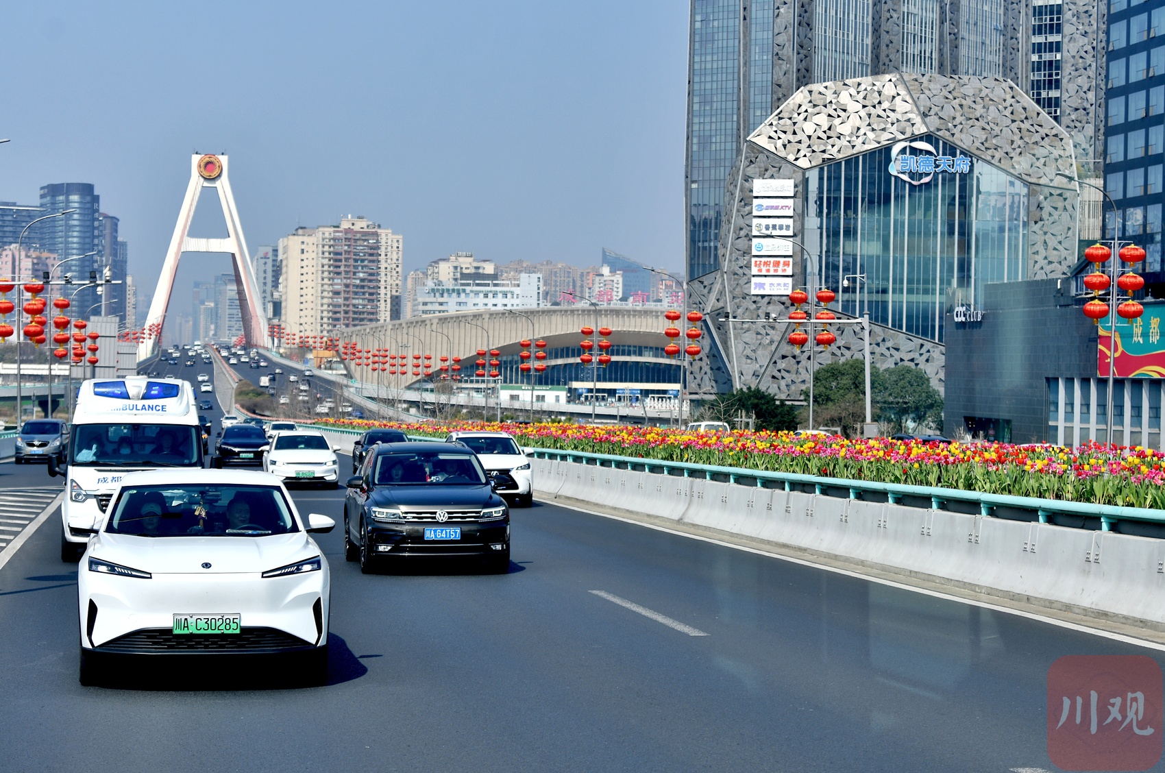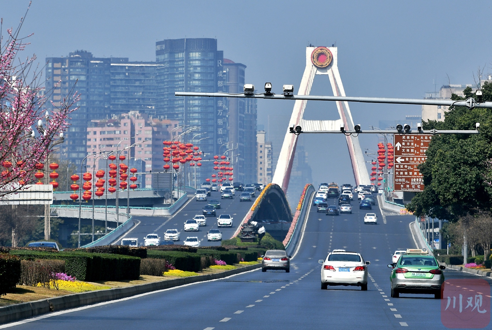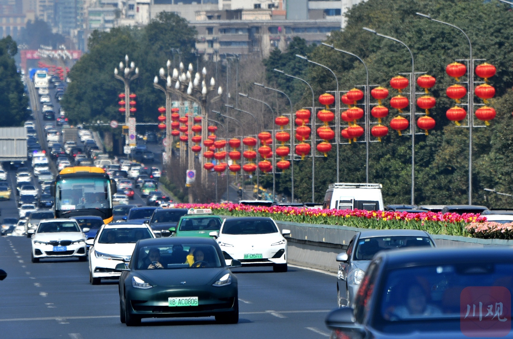 中轴线上车轮滚滚,窗外隔离带上繁花似锦。今年春节,成都市的主干道上,各类新春花卉景观也已装点一新,以花为媒,传递出蓉城独有的温情。
