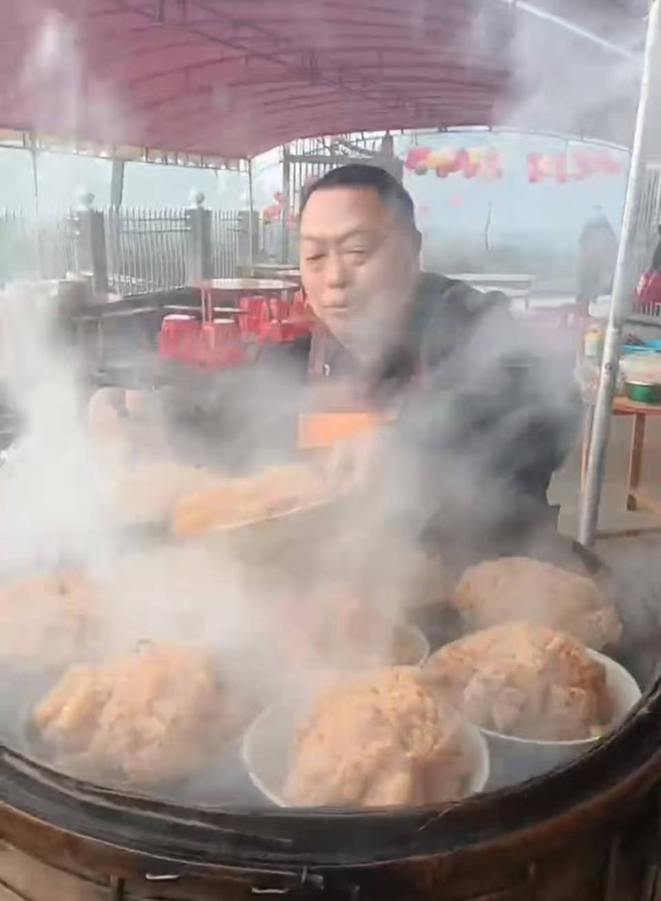 △乡厨吴席林揭开热气腾腾的蒸锅(图片由受访者提供)
