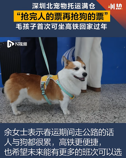 2月12日,记者在位于深圳北站B2出站口处的中铁快运营业厅看到,当天有宠物主人陆续带着毛孩子来到营业厅办理托运手续。春运期间,宠物托运订单量上涨,不少车次仓位均是爆满。其中,前往武汉的G400次列车的8个宠物仓位已经全部约满。