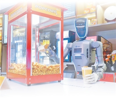 近日,去广东深圳市K11商场看电影的市民惊奇地发现,递上爆米花的居然是一台人形机器人。识别指令、抓取纸杯、装填爆米花、递给顾客……这台由深圳市越疆科技股份有限公司生产的机器人,单日可以连续工作14小时,日均完成超1000杯爆米花的制作与售卖,全程零失误。