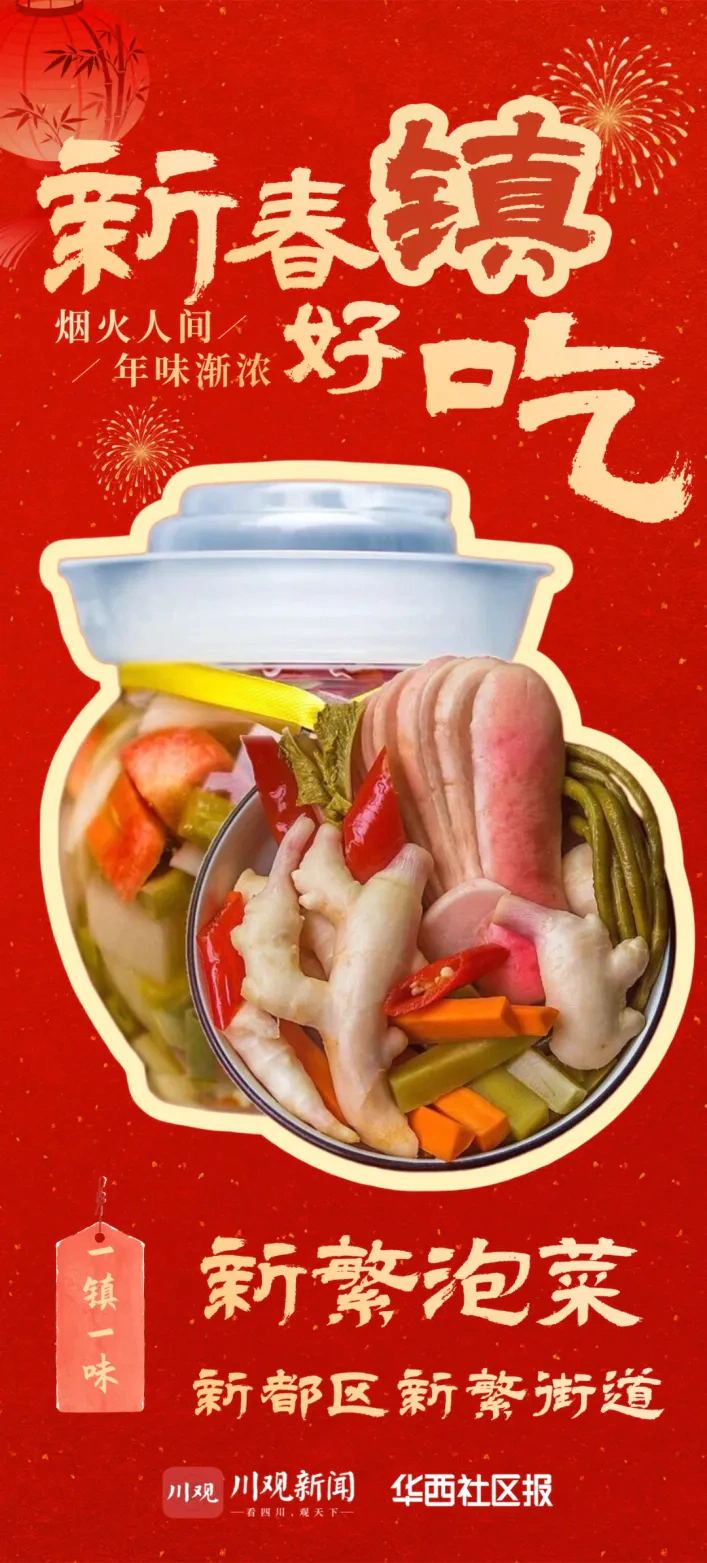 这项承载着世代智慧的技艺,已于2008年被列入国家级非物质文化遗产。如今,新繁泡菜更从家常小菜发展成为重要的产业与文化名片。在现代产业功能区的推动下,其在坚守古法的基础上融入科技,产品咸淡适口、香脆回甘,不仅畅销全国,更远销海外,让这一坛穿越千年的风味,持续香飘世界。