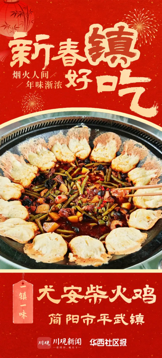 在简阳平武镇尤安村,年味随灶火升腾,凝聚于一锅柴火鸡中。这道美食的魅力,在于它根植于一条完整的本土产业链:跑山鸡源于林下生态散养,烹饪热油产自镇属公司,锅边玉米馍与佐餐米饭均取自本地种植加工的粮油。一灶一锅,串联起从田间到餐桌的乡村产业体系。