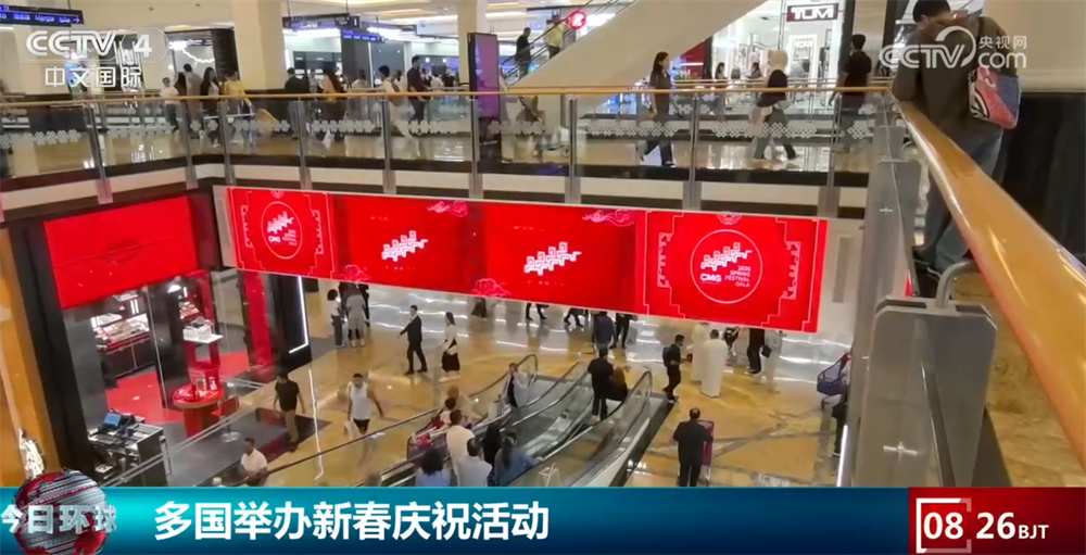 近日,中央广播电视总台精心制作的马年春晚宣传片走进阿联酋、卡塔尔、沙特以及伊拉克等中东多国城市商圈,以及南非开普敦各大商圈,通过大屏矩阵集中展播,让当地民众在日常生活场景中近距离感受中国春节文化魅力。团圆祥和的春节影像与城市景观交相辉映,行人在日常出行中抬头便能看到中国春节文化元素。