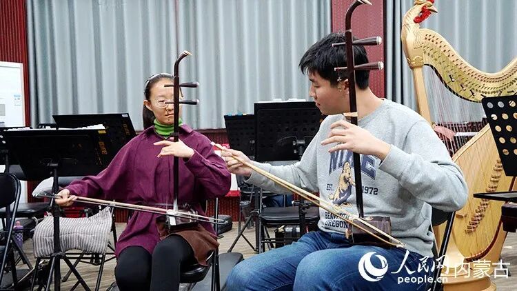 包头市艺术剧院民族乐团的二胡演奏员正在排练室演奏经典曲目《赛马》。人民网记者 张力洋 摄