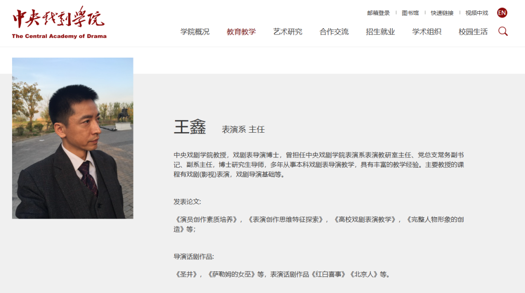 据公开资料,王鑫,中国内地男演员,中央戏剧学院表演系主任、教授,戏剧表导演博士。