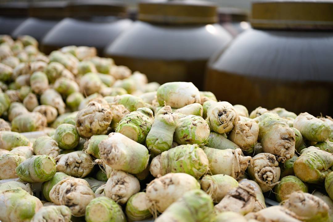 “肉里有传统老筋,口感不好;抗病能力弱,易长虫;产量低。”罗淮良说,但比起全国范围十五六个上万吨产区的大头菜,成佳大头菜又很能“打”:皮薄肉多、肉质脆嫩、工艺独到、口感上佳、品质上乘,发酵后酱香浓郁,是高端料理不可多得的调味食材。