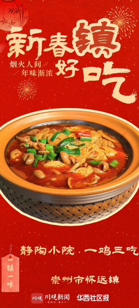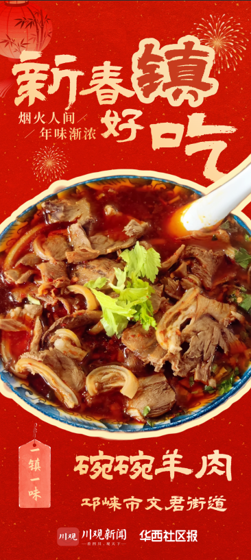“蓉城24味新春‘镇’(街道)好吃”系列寻味之旅本期走进邛崃市文君街道、成都东部新区贾家街道、锦江区狮子山街道以及崇州市怀远镇。从文君故里琥珀汤浓的碗碗羊肉,到成渝要道移民街上软糯鲜香的毛鸭子,再到东门市井重现文学雅韵的姜汁热窝鸡,以及田园小院里一鸡三吃的物尽其用——四道镇街风味,或承古道码头烟火,或融南北饮食智慧,或载文人匠作余温,或藏乡村闲情野趣,于岁末寒冬汇成一席可品可感的成都年味。成都街巷深处的味觉密码,正以这些代代相传的老味道,写下一部活色生香的饮食生活史。