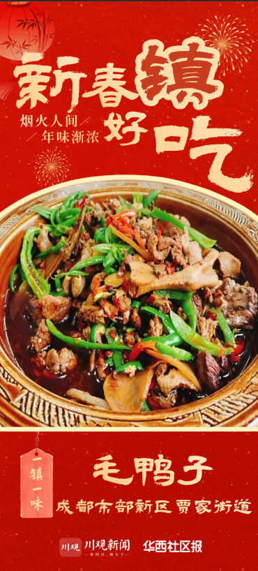 位于成渝交通要道上的成都东部新区贾家镇街道,在岁月的沉淀中,不仅形成了发达的商业、繁荣的经济,更融汇了南北饮食文化,形成了一系列独树一帜的美食品牌。其中,毛鸭子便是其中的代表,曾被评选为简阳“餐饮九绝”之一,成为一道来了东部新区不得不品尝的名菜。