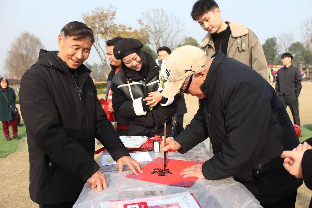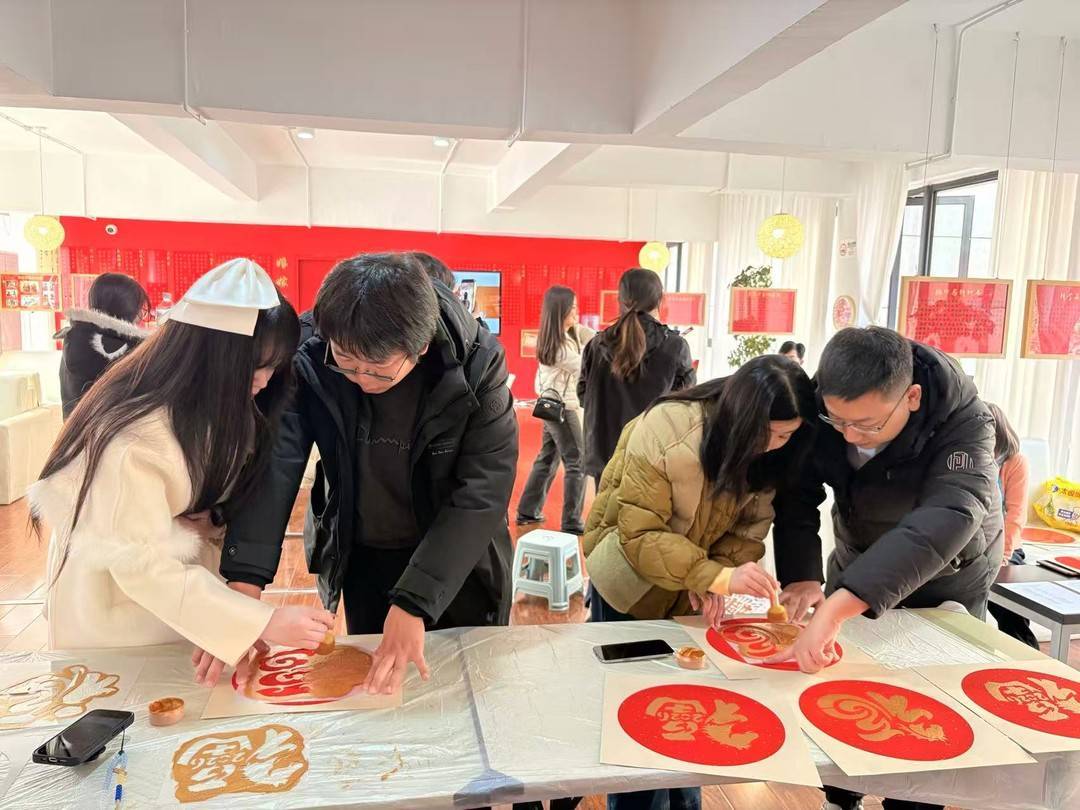墨香从两处飘起。书法老师挥毫泼墨,将“福”字与春联化作新婚贺礼,为当天登记的新人送上真挚的祝福。在晋吉南路婚姻登记处,福字拓印体验让传统非遗走进婚登大厅——金墨轻拓,福纹初现,那份来自时光深处的文化温度,融进了新人们对未来的期许里;指纹纪念相框制作台前,新人们以指尖印记共绘“同心圆”,将这一刻的同心同愿装帧成可触摸的记忆。