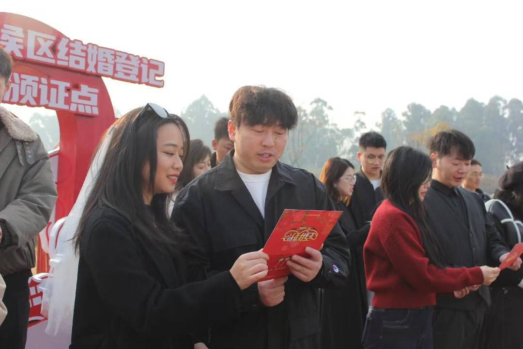 一场场颁证,不仅是每一位新人的浪漫定格,更是婚俗改革一次次的温情实践。从颁证到誓言,从墨香到指印,从讲座到打卡,文明婚俗理念悄然深入人心。武侯区民政局相关负责人表示,未来将持续深化“蓉城囍事”“天府有囍”婚俗改革服务品牌,以更具创意、更富人文关怀的形式,陪伴新人走好婚姻生活的每一步。