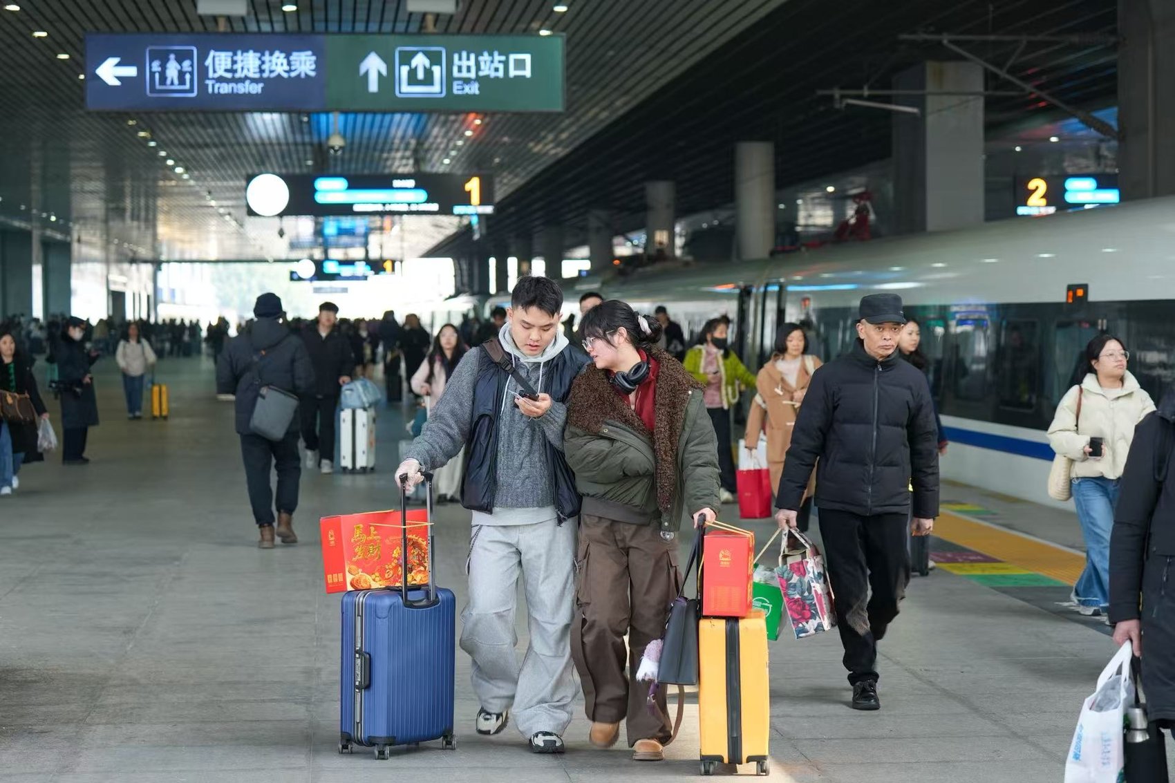 2月14日,记者从中国铁路成都局集团有限公司(以下简称“国铁成都局”)获悉,当日开行旅客列车达2213列,预计发送旅客169万人,迎来客流出行高峰,客流主要集中在成渝、成绵、成达、西昌、乐山、南充等热门方向和城市。