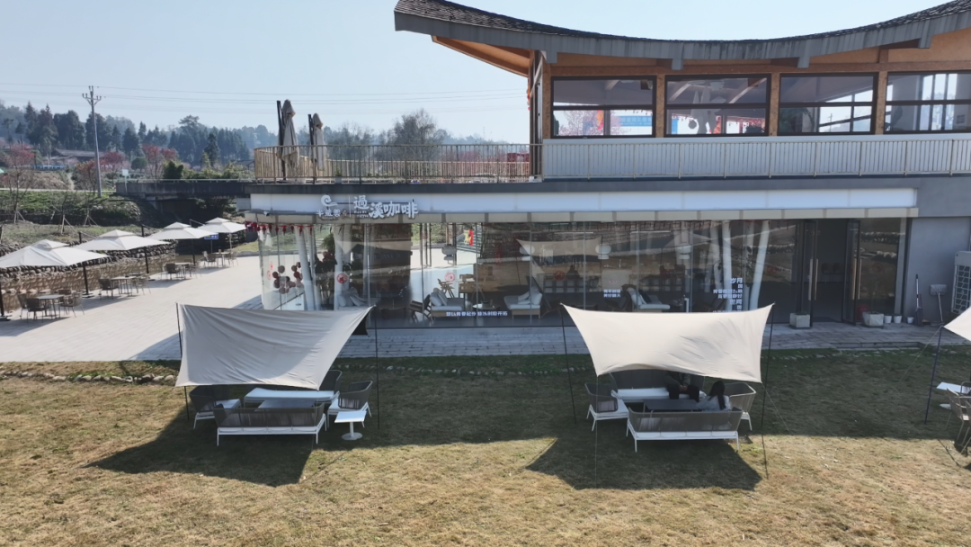 营地旁是颇具格调的“半藏云过溪咖啡厅”,咖啡爱好者可以在此“续命”。而咖啡厅外的大片空地,则是坝坝茶和围炉煮茶的绝佳主场。