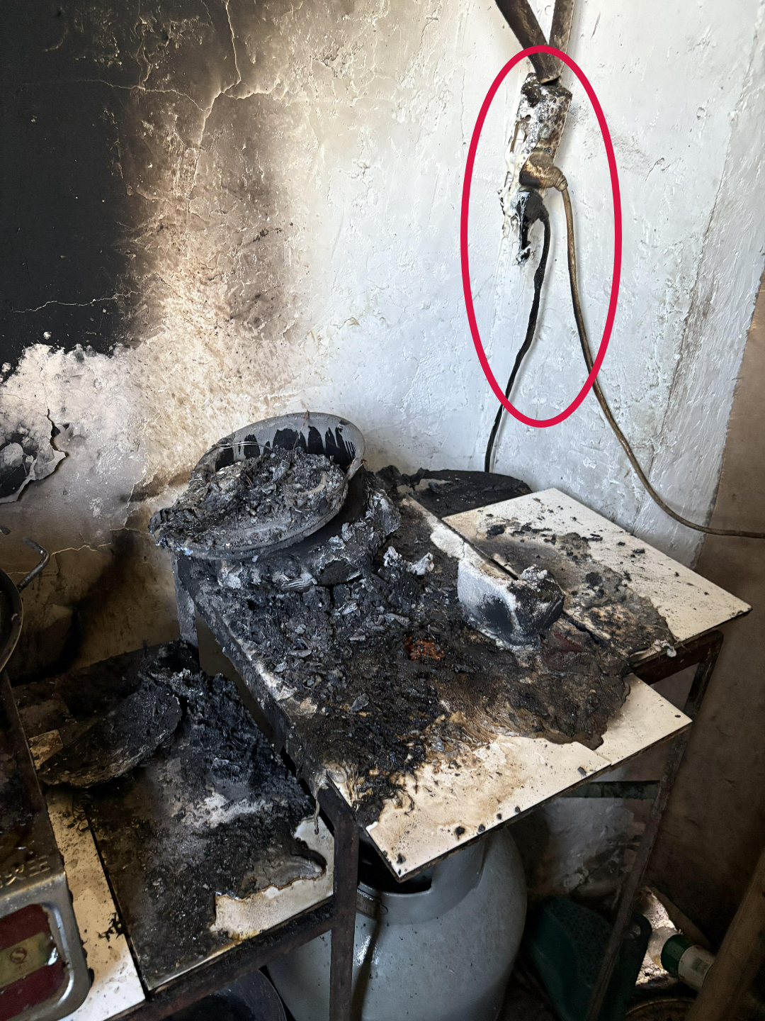 通过上述试验我们可以看到,当多个大功率电器同时连接到同一个插线板上,会导致电源线因电流过载而产生大量高温热量。如果将电线捆扎在一起,产生的高温热量不容易散失,就可能引发短路、打火,增加火灾发生的概率。
