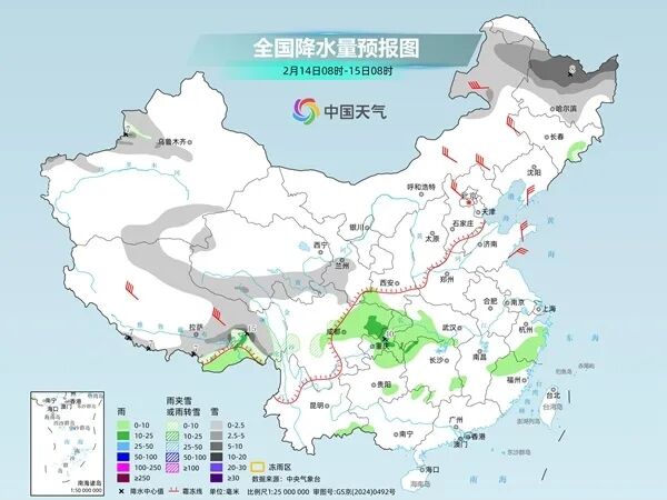 中央气象台预计,今天,新疆伊犁河谷和南疆南部、西藏东部和南部、青海南部、甘肃西南部、川西高原北部、内蒙古东北部、黑龙江大部等地部分地区有小到中雪或雨夹雪,其中,新疆伊犁河谷、西藏南部、黑龙江北部等地局地有大到暴雪;西藏东南部、陕西南部、四川盆地中北部、重庆中北部、湖北中西部、贵州北部、湖南北部、浙江南部、福建北部等地部分地区有小到中雨,其中,重庆中部局地有大雨。