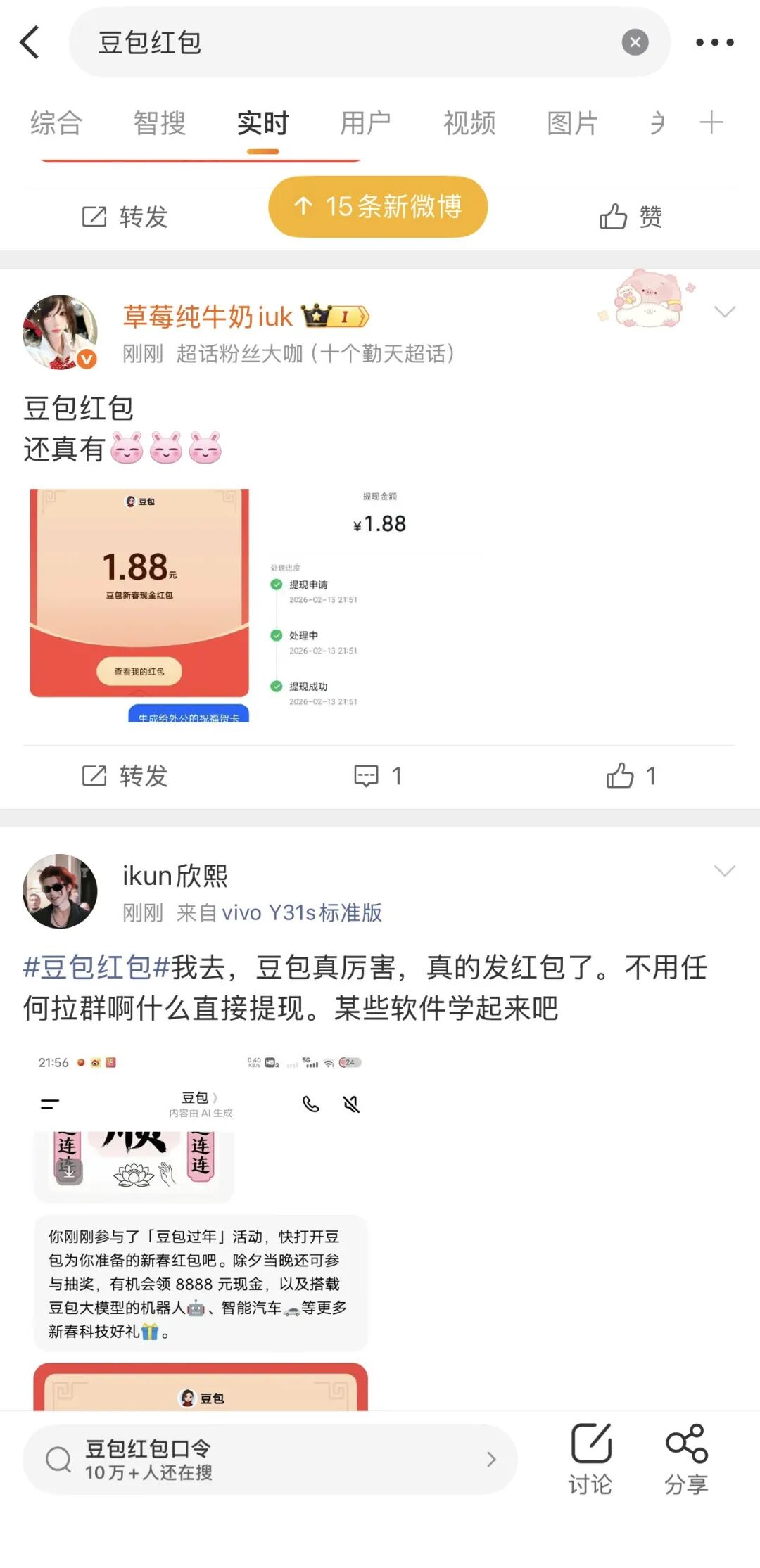 2月13日晚,“豆包过年”新春活动第一阶段正式启动,“豆包红包”话题词冲上热搜。