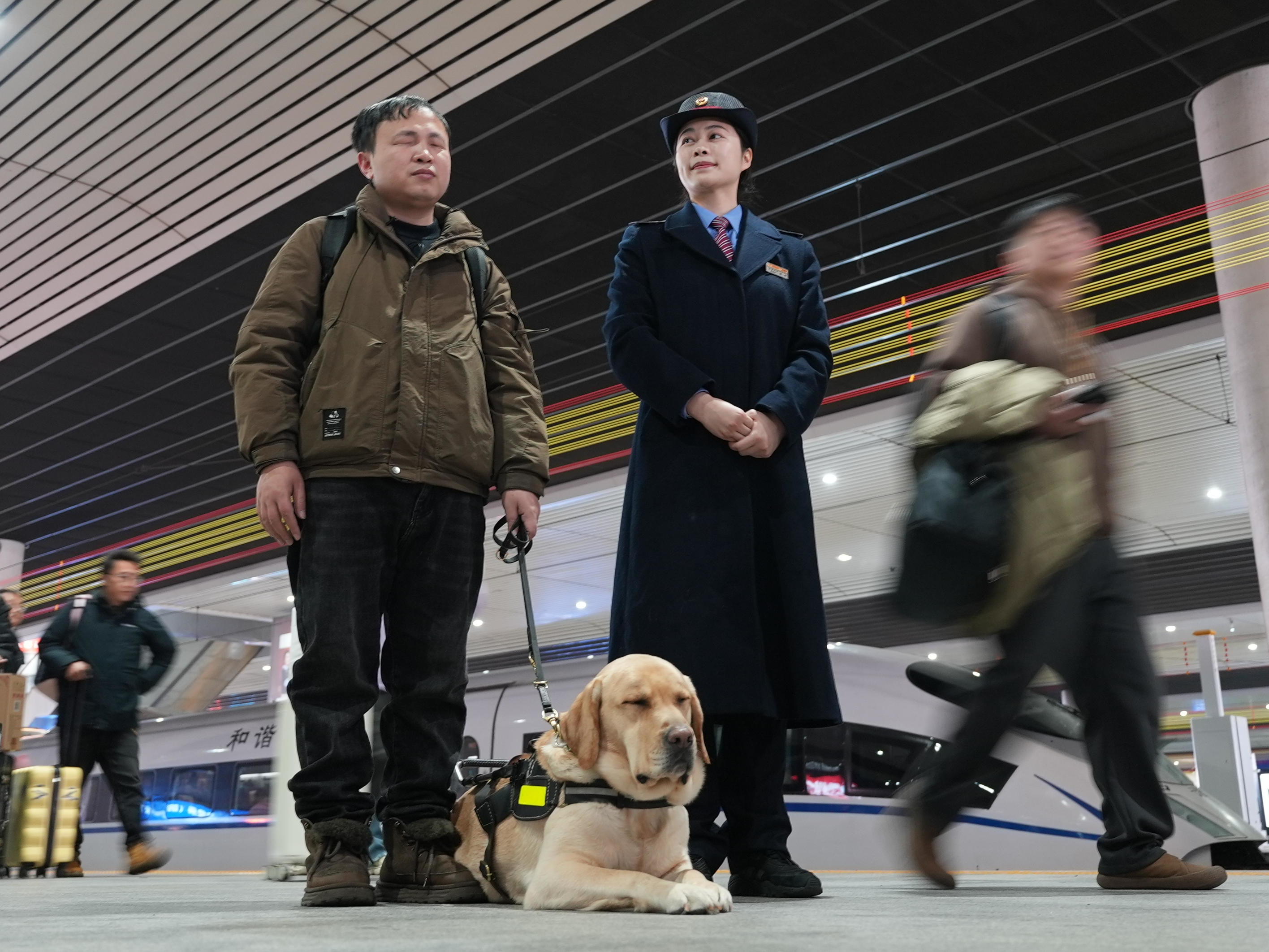 腊月二十五,兰海波和导盲犬“拿铁”一起来到车站,准备乘高铁回老家安州过年。这也是他春节前最后一次乘动车通勤。过去一年多来,每隔半个月,兰海波便会在“拿铁”的陪伴下乘车往返。兰海波说,视障人士与导盲犬形影不离,能够带它们上车,意味着被平等接纳。和去年春节一样,今年兰海波也为“拿铁”准备了新年礼物——新衣服、长命锁和装着肉干的红包,“它可能不理解这些礼物的意义,但我们快乐的心情它是能感受到的。”
