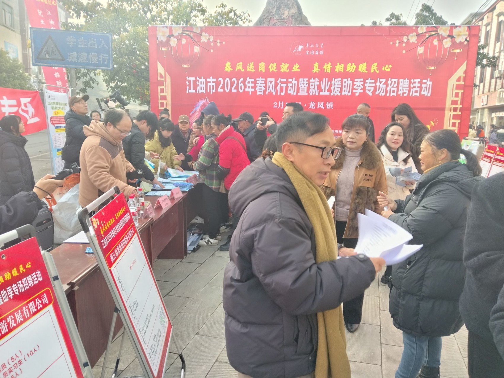 “场镇上就有招聘会,在家附近就可以找工作。”2月13日,绵阳江油市彰明镇东门口文化小广场上,江油市2026年春风行动暨就业援助季专场招聘会在这里热闹举行。岗位送到老百姓家门口的招聘活动,让不少群众称赞“非常方便”。