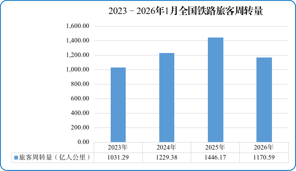 图22023—2026年1月全国铁路旅客周转量