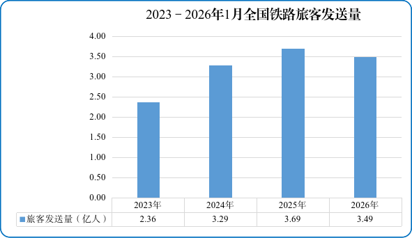 图12023—2026年1月全国铁路旅客发送量