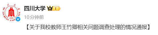今晚(2月14日),四川大学发布“关于我校教师王竹卿相关问题调查处理的情况通报”: