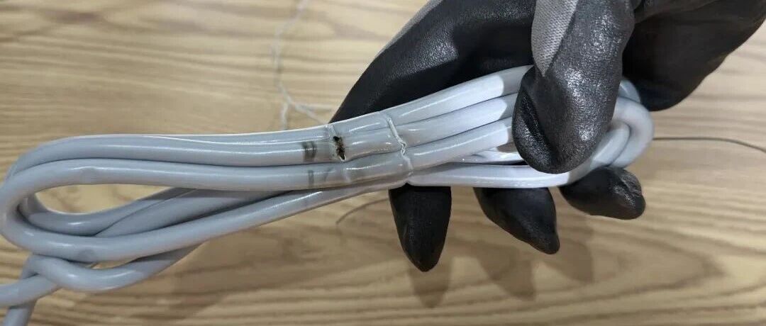 被捆扎的电线外皮已烧焦。图源:南京消防