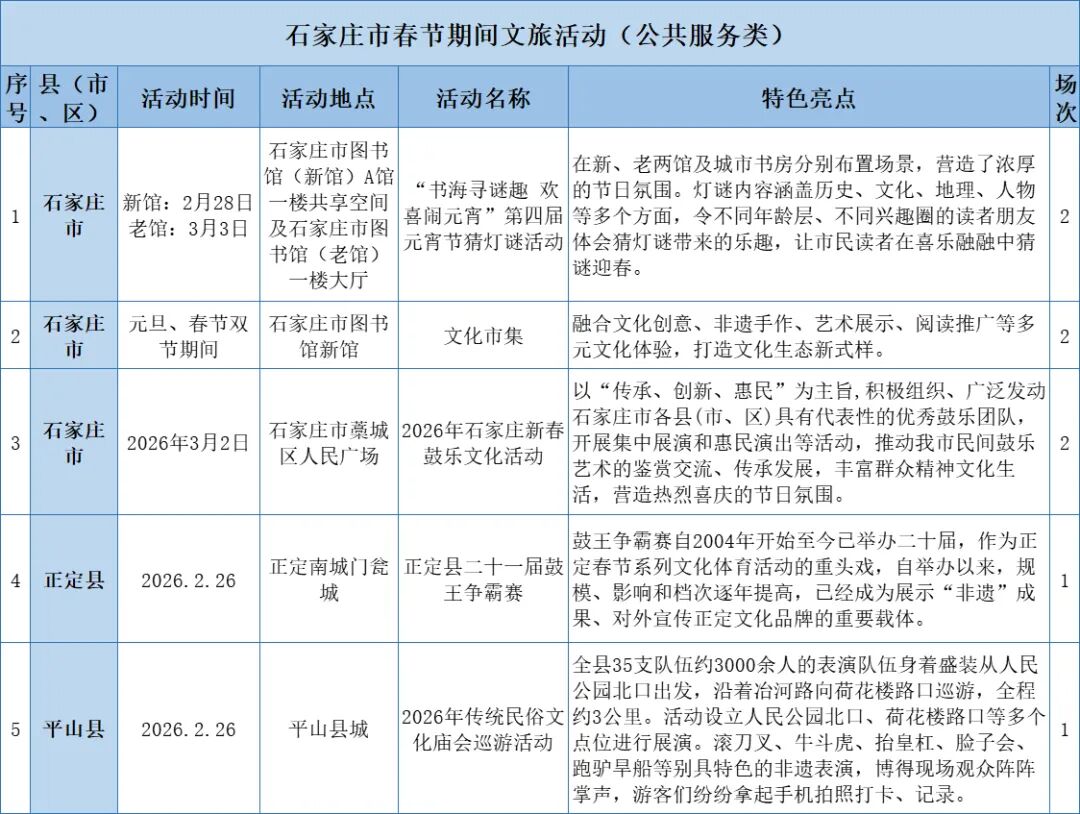 春节期间,石家庄市精心组织了一系列丰富多彩、特色鲜明的文旅活动。一起来看看吧!